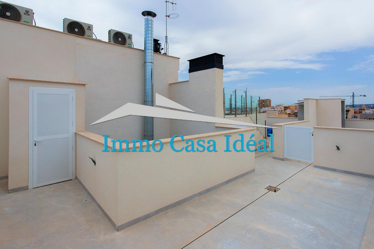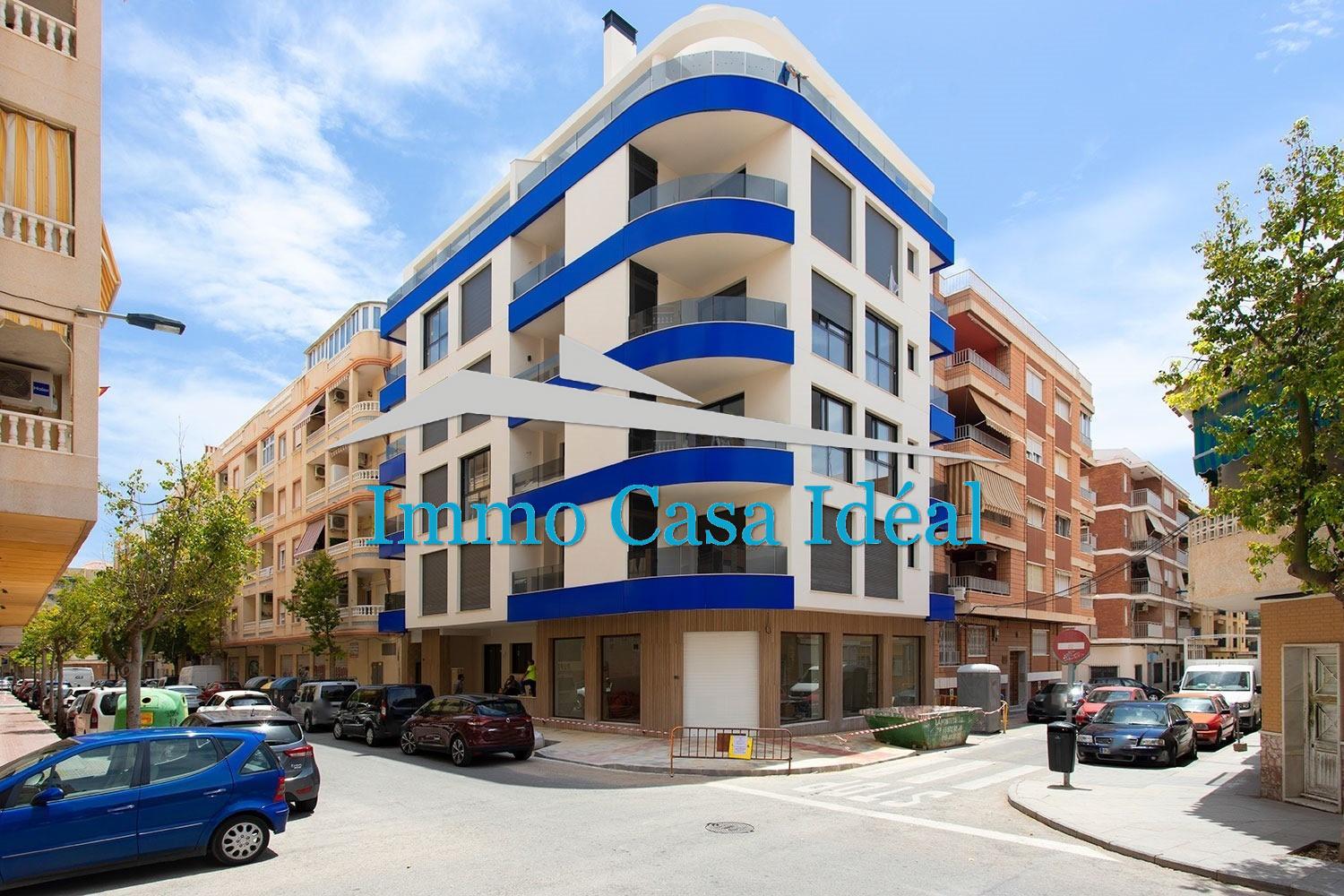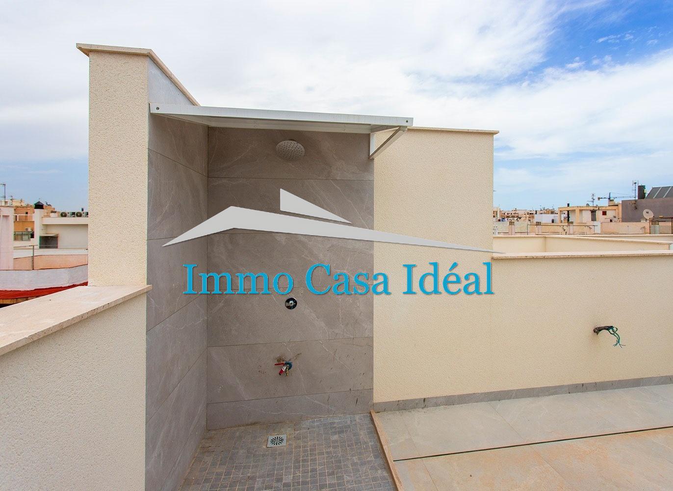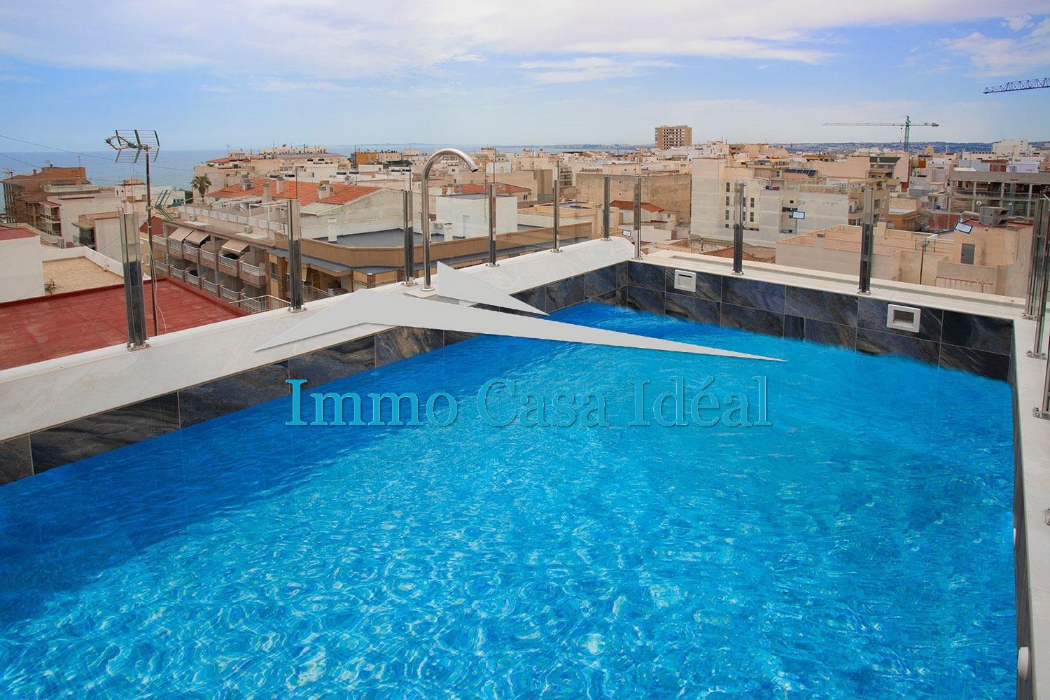 Helt ny hjørnelejlighed i moderne stil, beliggende i et elegant boligkompleks med fælles tagterrasse med pool og havudsigt i det bedste område af Torrevieja, kun få minutters gang fra Playa del Cura og strandpromenaden!