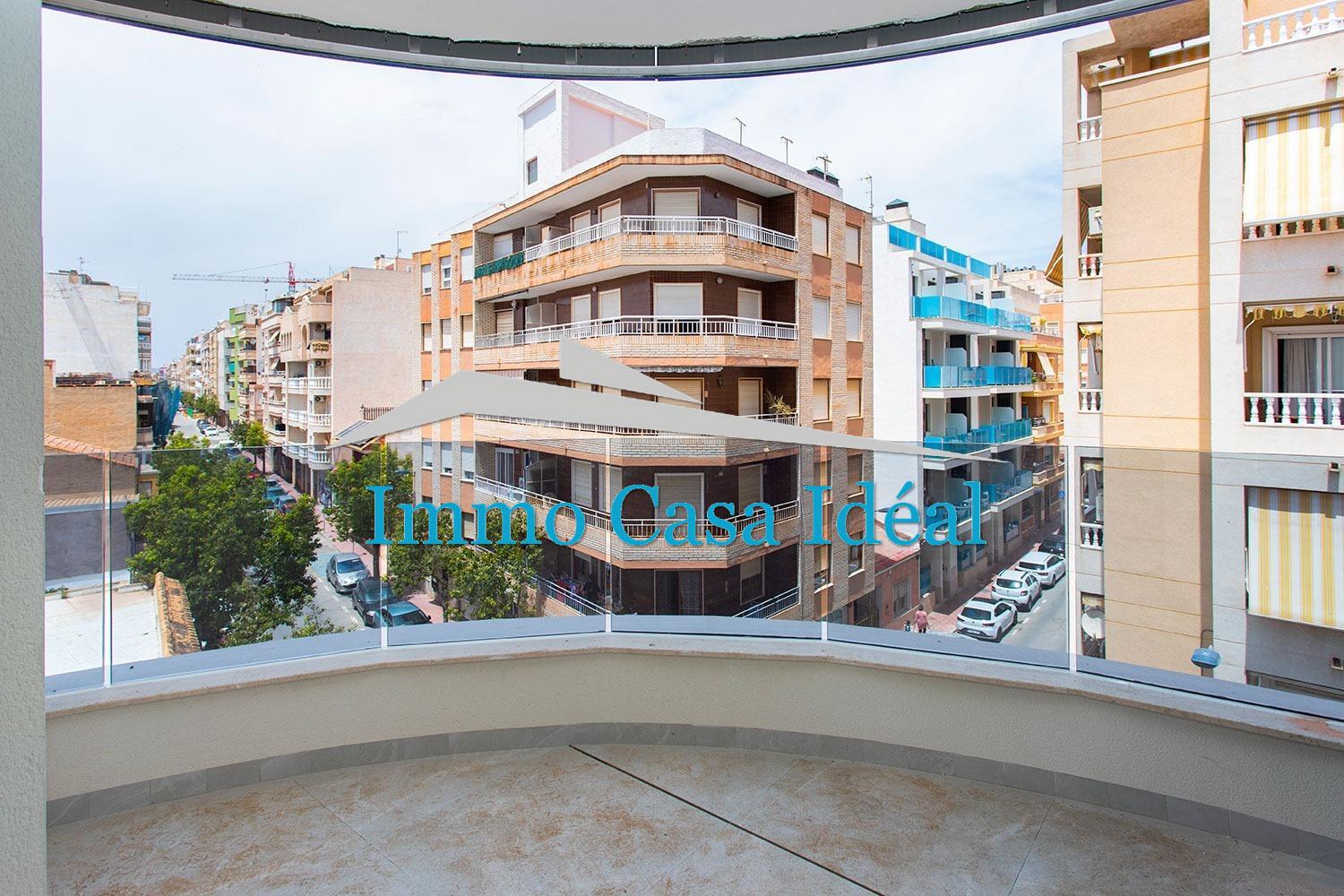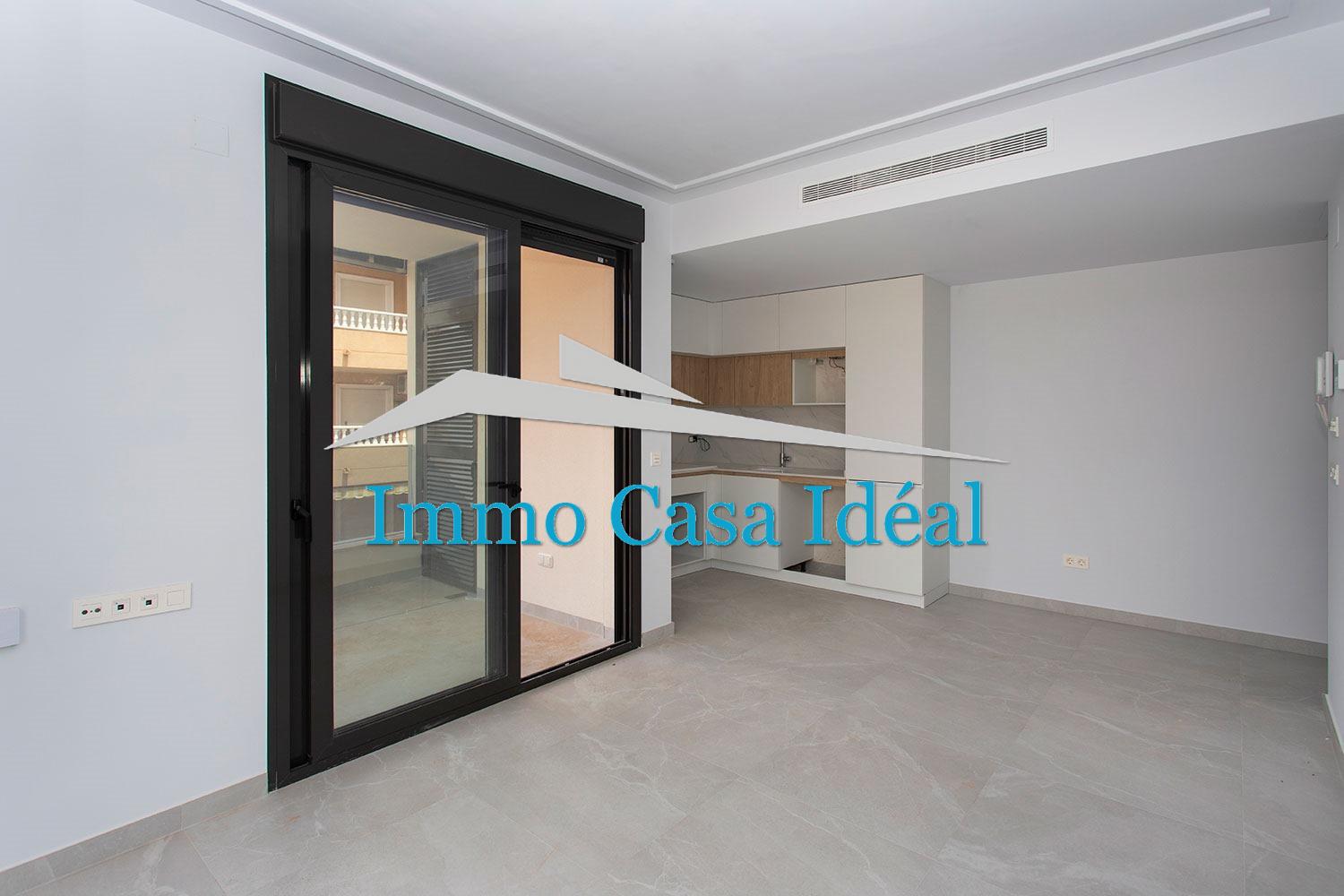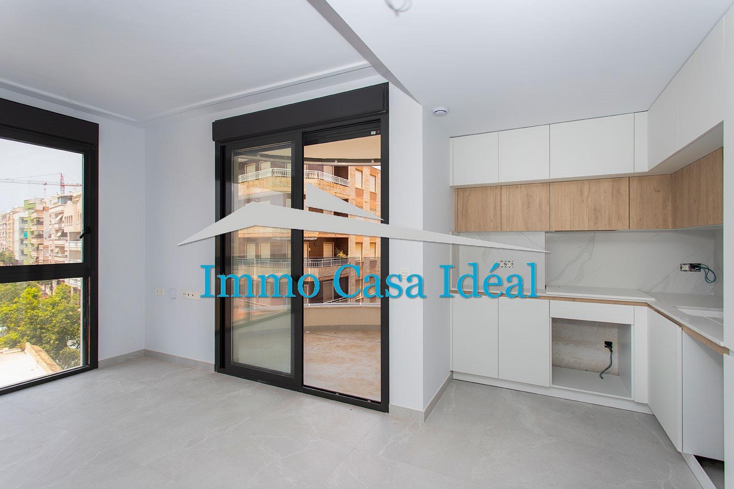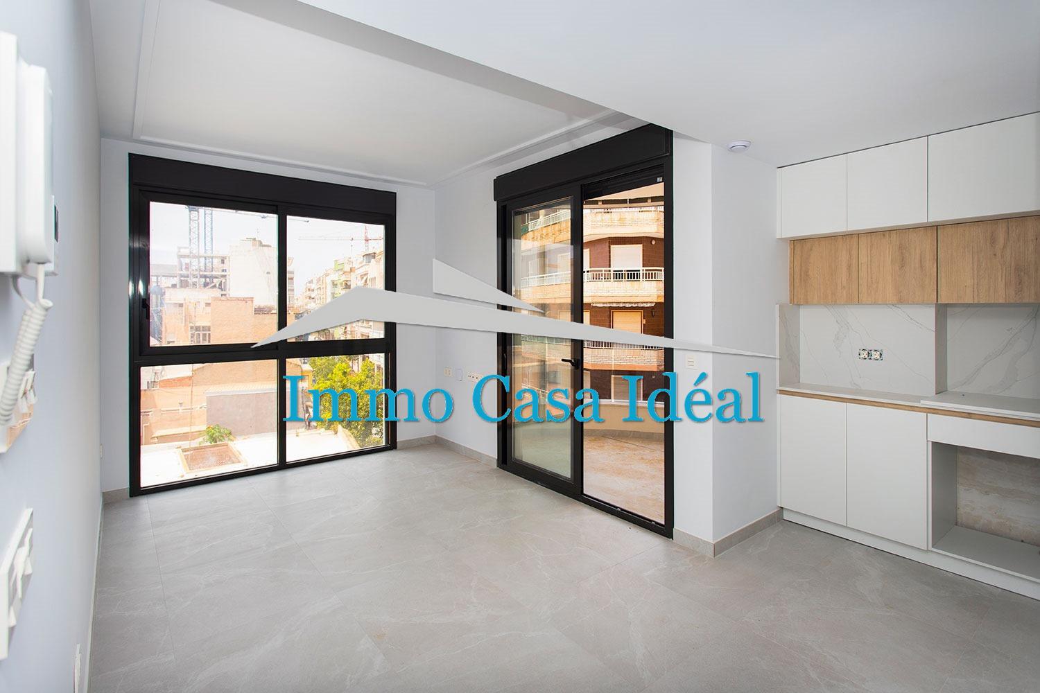 Helt ny hjørnelejlighed i moderne stil, beliggende i et elegant boligkompleks med fælles tagterrasse med pool og havudsigt i det bedste område af Torrevieja, kun få minutters gang fra Playa del Cura og strandpromenaden!
