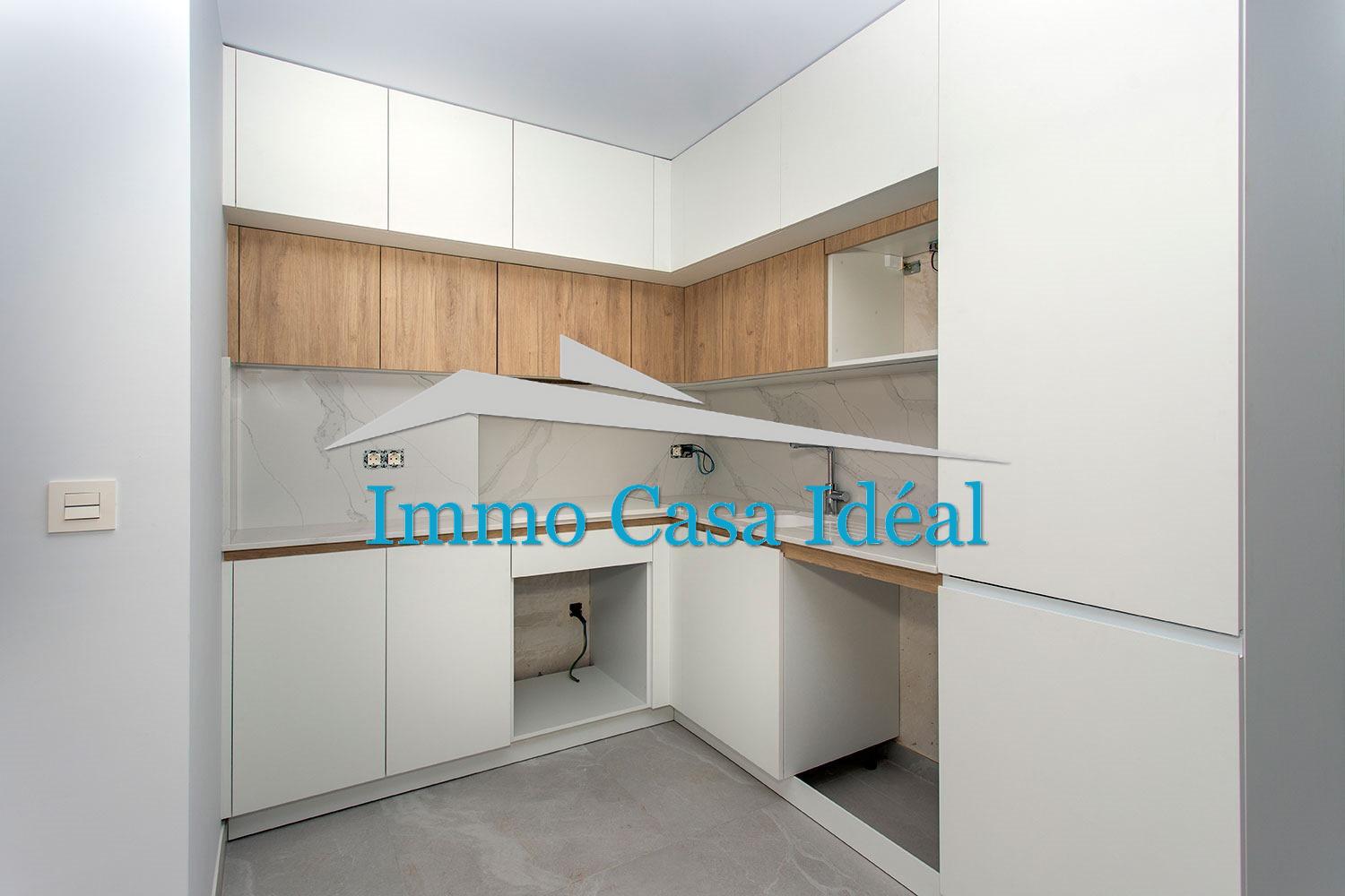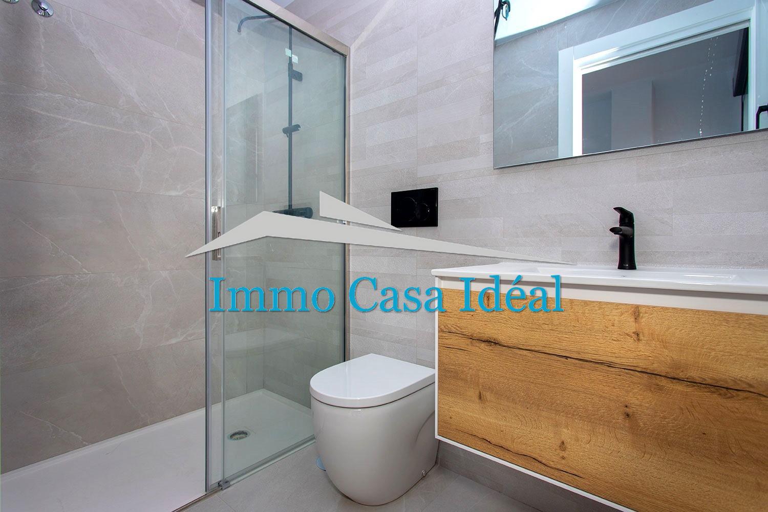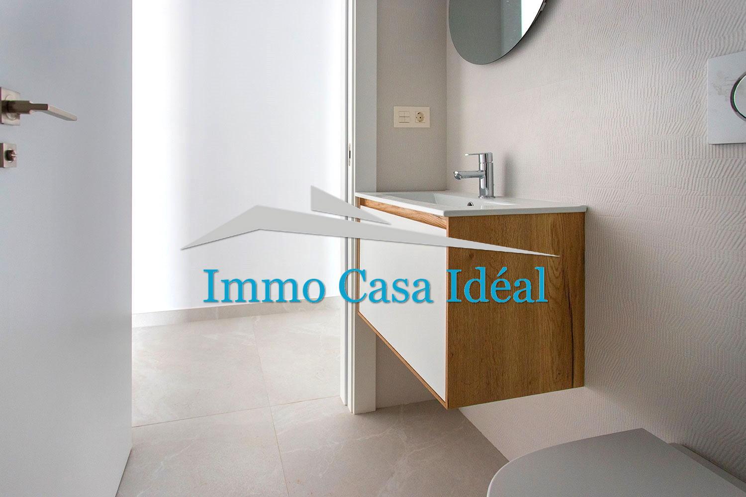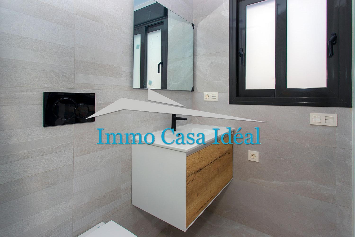 Den består af en rummelig stue-spisestue med adgang til en terrasse med delvis havudsigt, et åbent køkken, to dobbeltværelser og to badeværelser med bruseniche. Soveværelset har eget badeværelse og adgang til en lille terrasse. Uindrettet. Ingen apparater.