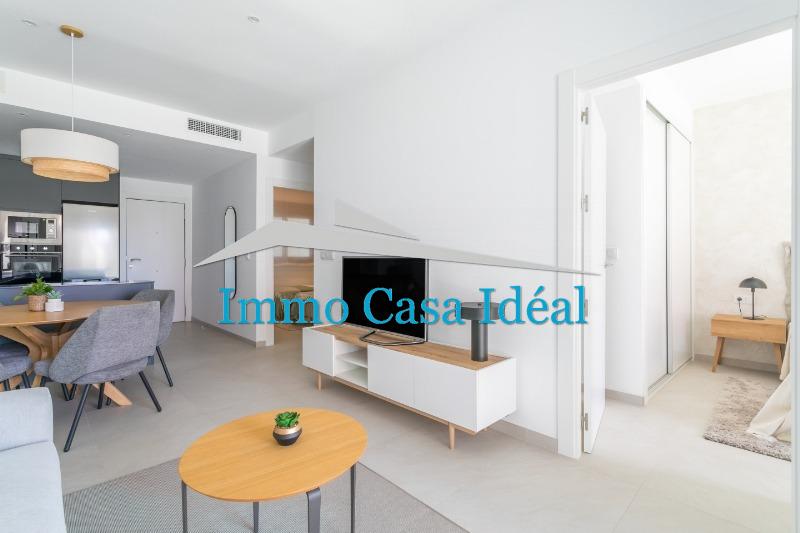 Die Penthäuser verfügen über 3 Schlafzimmer, 2 Badezimmer und ein geräumiges Solarium (erreichbar über eine Innentreppe). Zur Ausstattung gehören eine Klimaanlage mit Luftwärmepumpe, Fußbodenheizung in den Badezimmern, viel Tageslicht, Wärme- und Schalldämmung, Einbauschränke, LED-Beleuchtung, Außenaufzüge und ein im Preis inbegriffener Parkplatz.