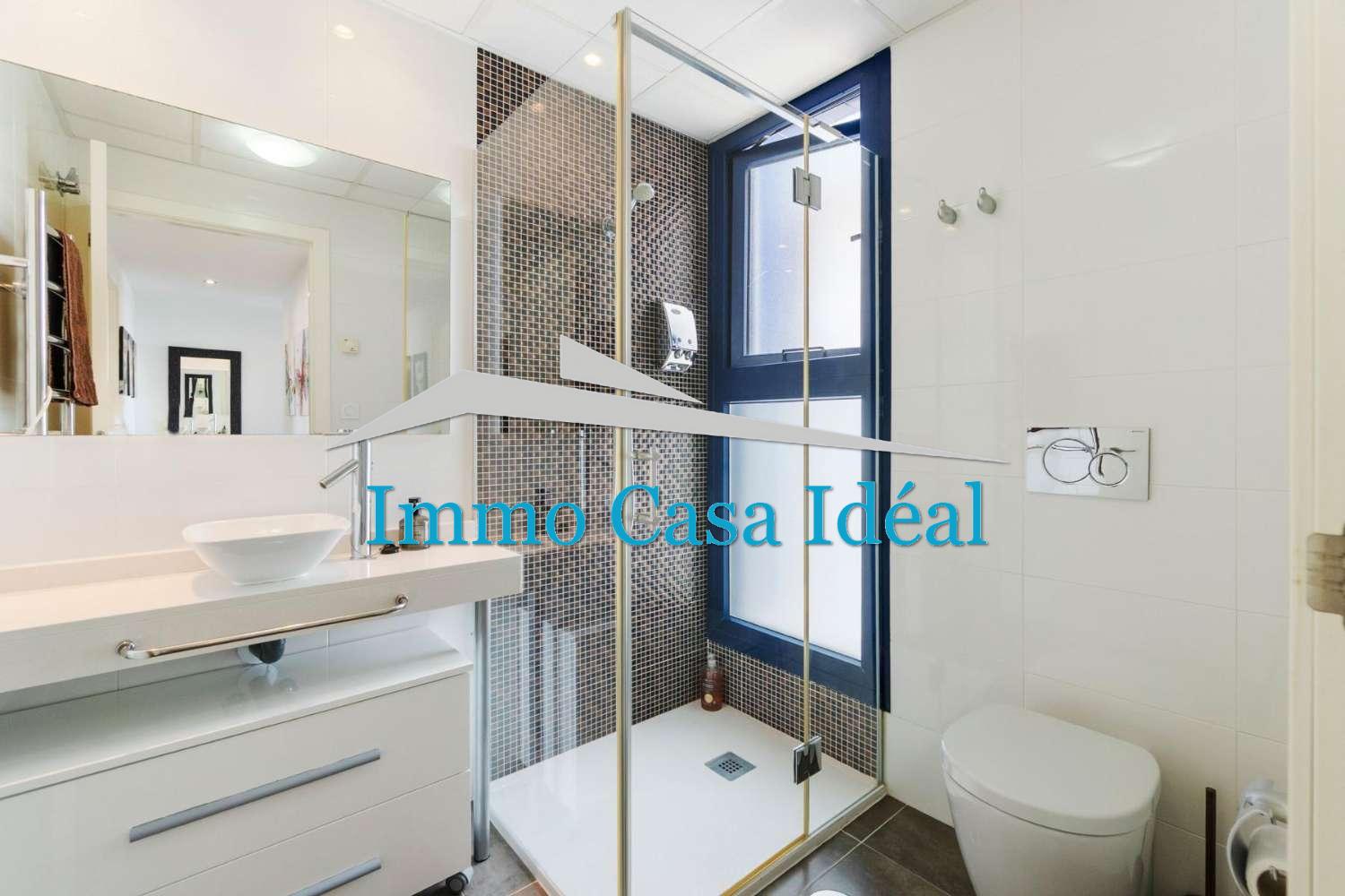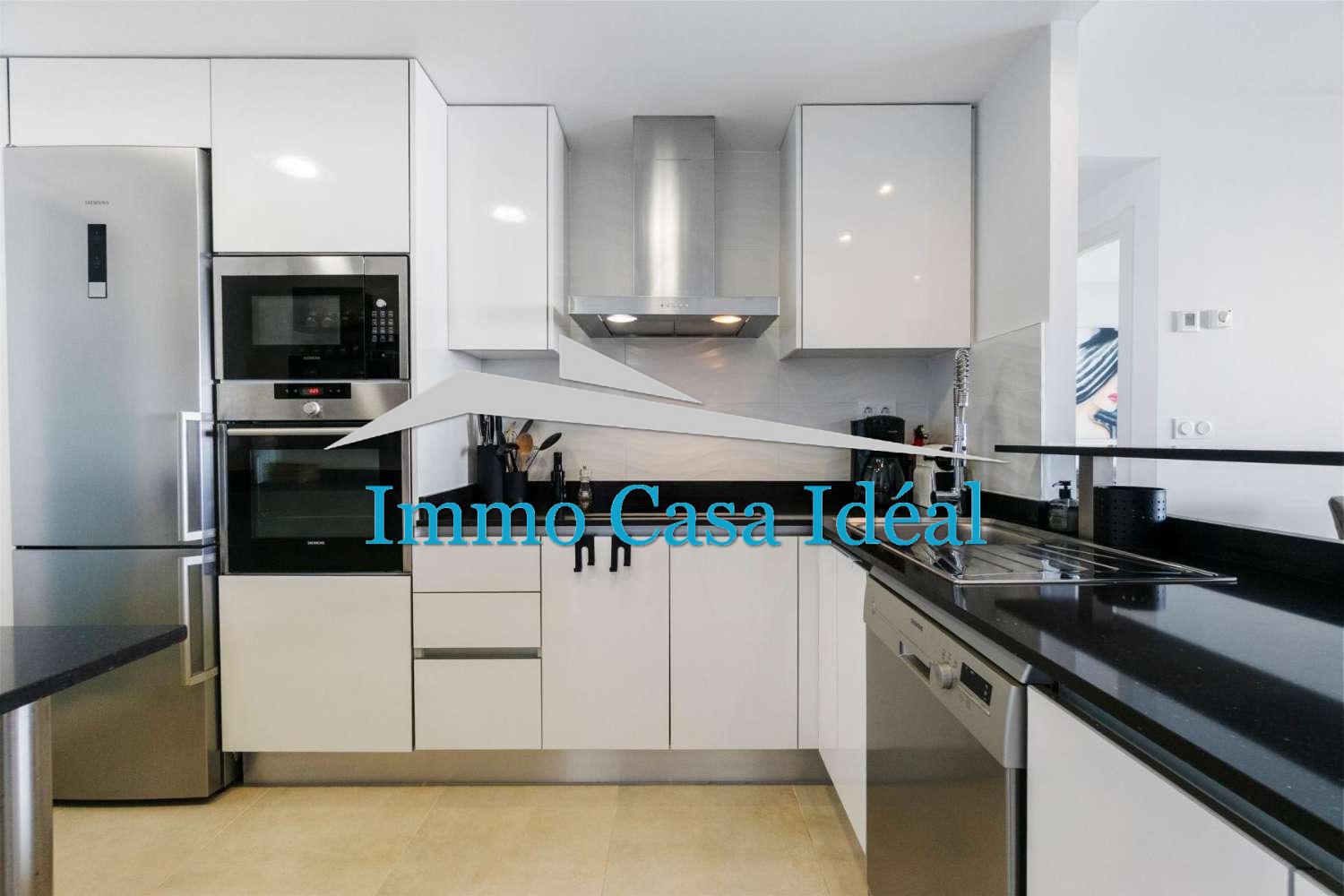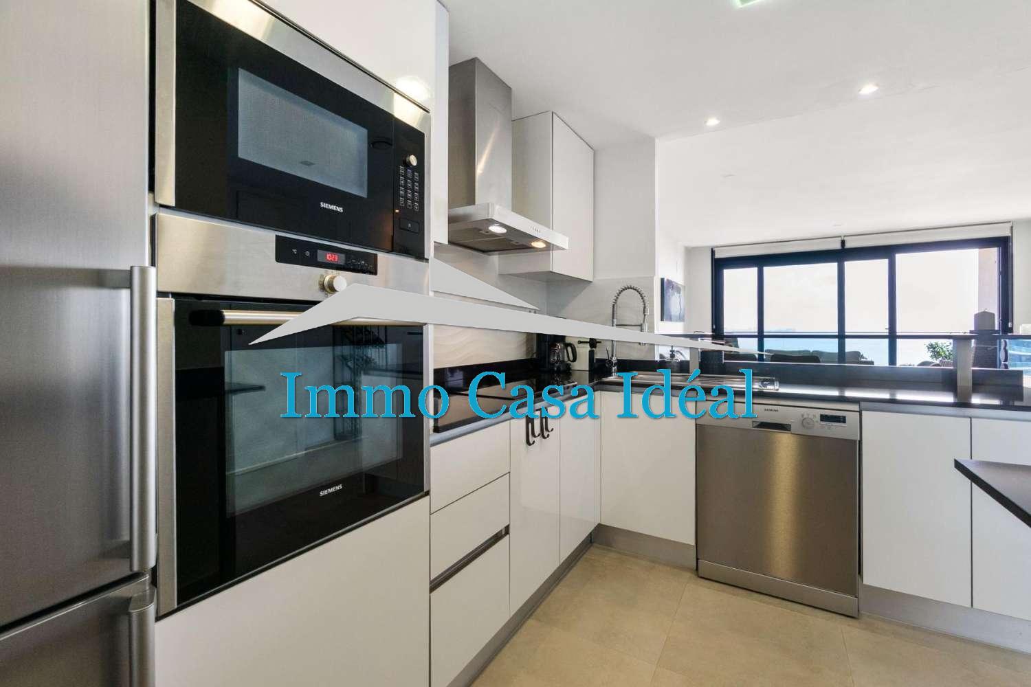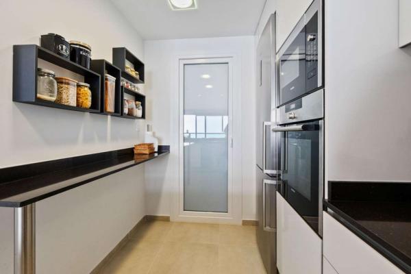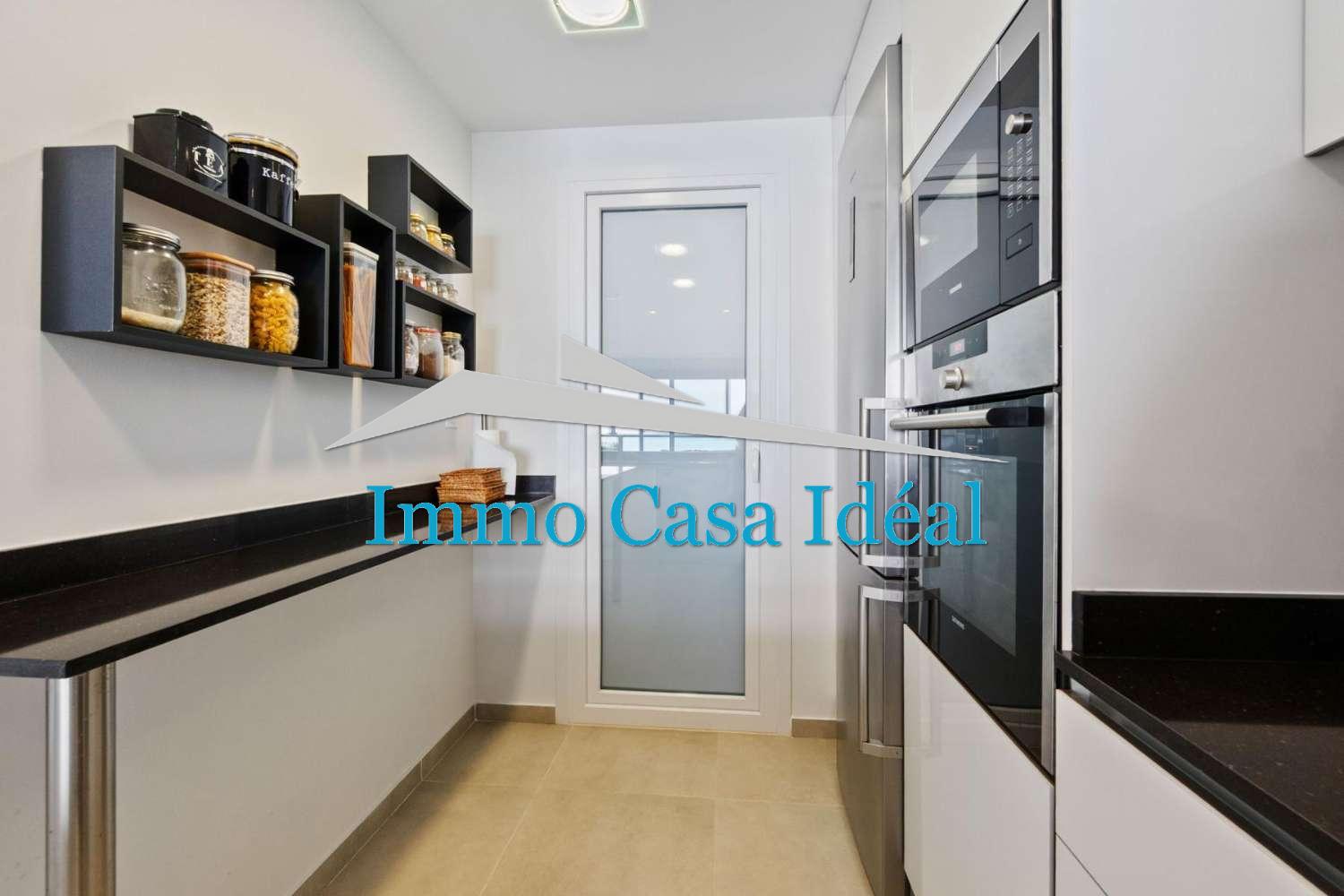 El apartamento cuenta con una elegante distribución con salón-cocina de planta abierta, lavadero, tres dormitorios y dos baños. La suite principal es un auténtico lujo: vestidor, baño privado con vistas al mar y vistas al mar desde la cama. También ofrece acceso a la terraza. La moderna cocina está totalmente equipada con electrodomésticos de alta calidad y se integra a la perfección con el amplio y luminoso salón, que cuenta con grandes ventanales orientados al sureste. Ya sea cocinando, relajándose o despertando, ¡siempre tendrá vistas al mar!