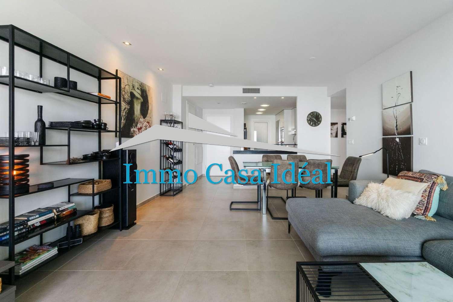 Nada más abrir la puerta, te recibirá una inolvidable vista panorámica del mar Mediterráneo, directamente desde el salón. Las terrazas, orientadas en tres direcciones, ofrecen sol o sombra durante todo el día. La superficie total de la terraza es de 37 m²: 30,4 m² en la parte delantera y 7,05 m² en la trasera, ideales para crear diferentes ambientes a lo largo del día.