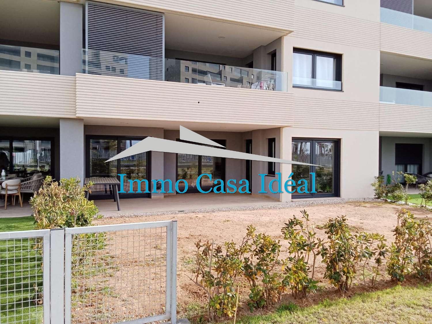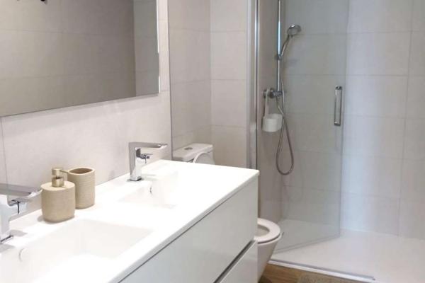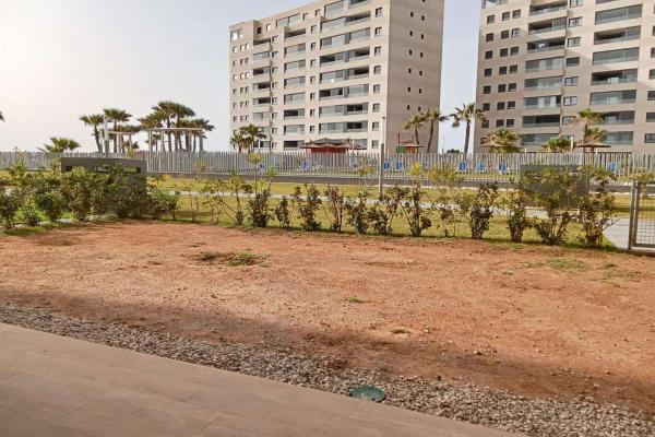 Consta de un salón-comedor-cocina con acceso a la gran terraza cubierta (unos 16 m2) y al jardín (unos 65 m2), dos dormitorios dobles con armarios empotrados, dos cuartos de baño y plaza de aparcamiento subterránea con trastero en mismo edificio.