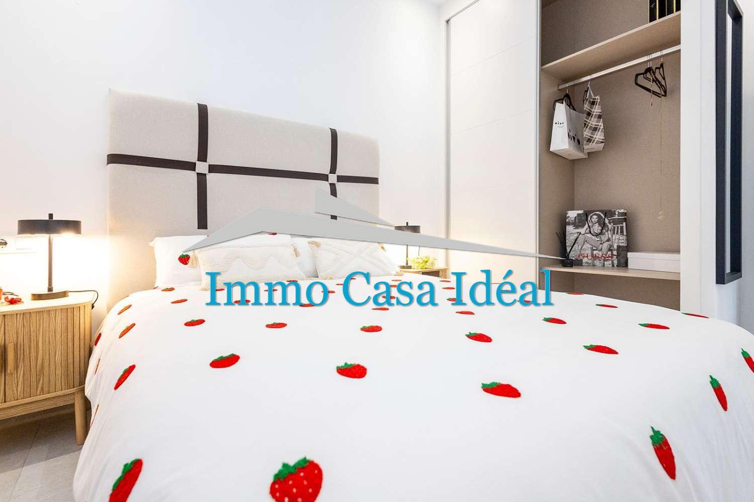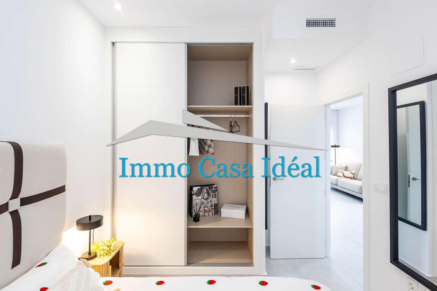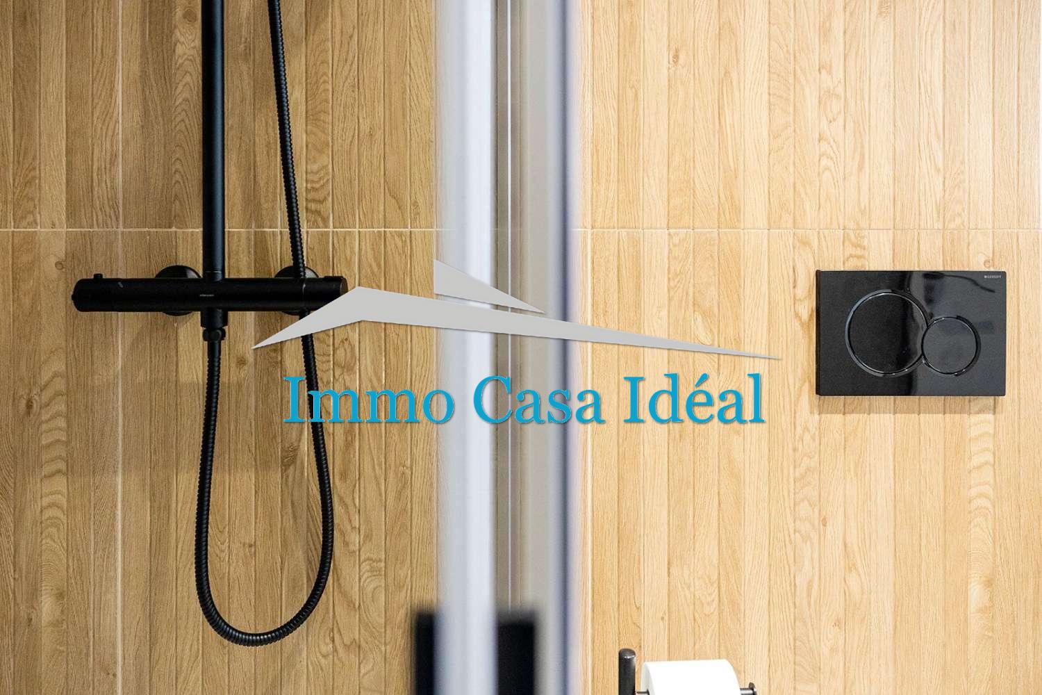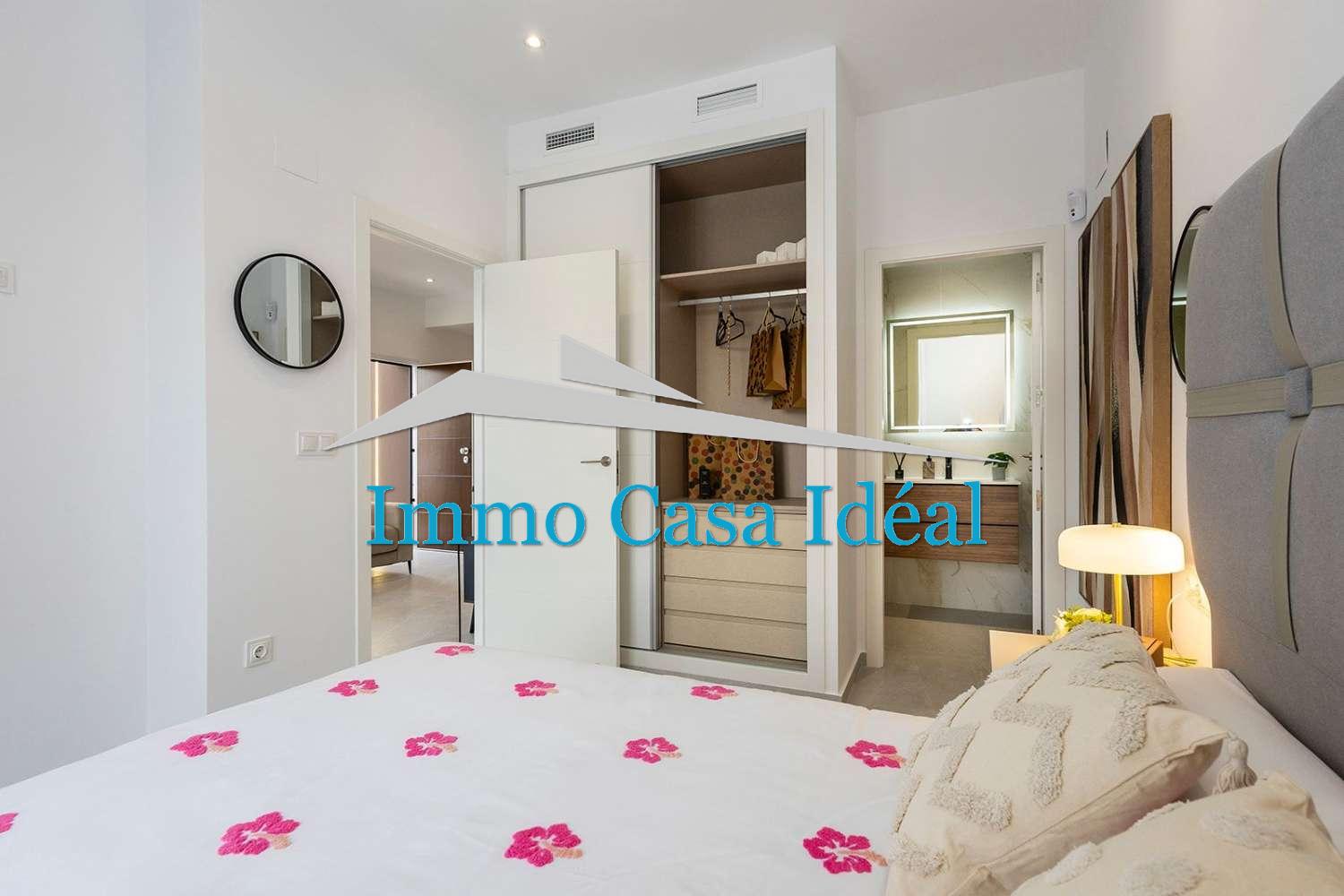 Terraza con porche cubierto, amplio salón-comedor y cocina de planta abierta, 2 dormitorios con armarios empotrados y 2 baños completos (uno en suite).