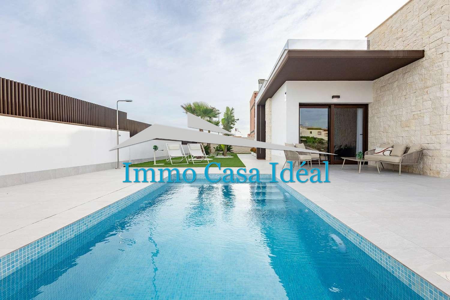 Estas excepcionales villas ofrecen una excelente relación calidad-precio. Cada una cuenta con una parcela privada con aparcamiento, una piscina privada de 5 x 2,5 m y un diseño meticuloso con materiales nuevos en el interior, el exterior y la fachada. Todo en la planta baja: