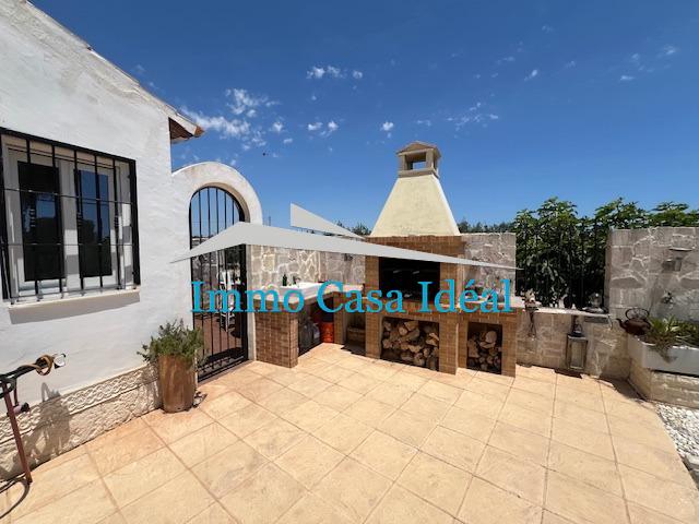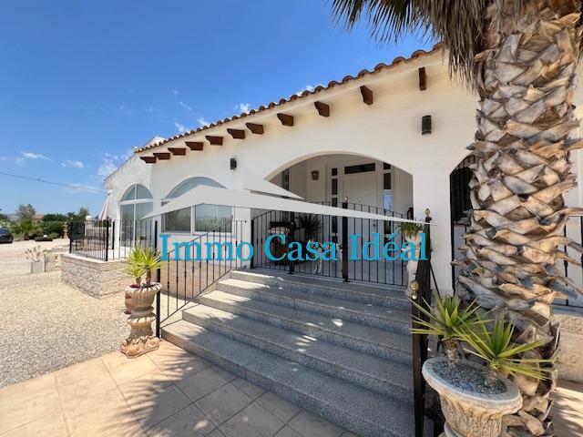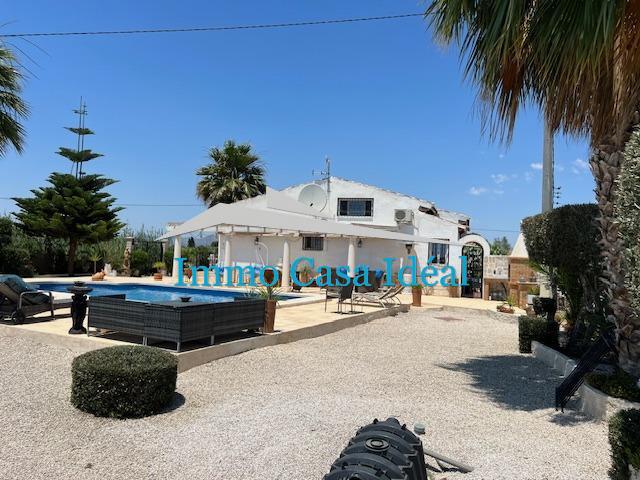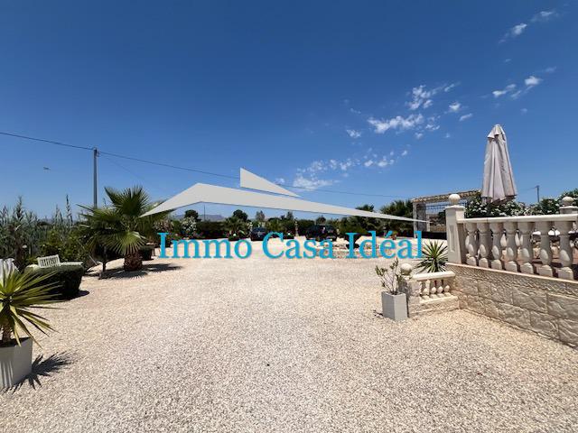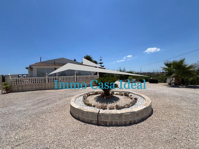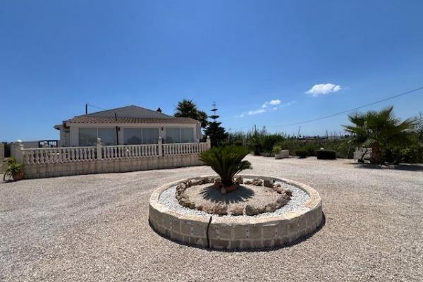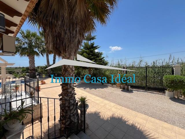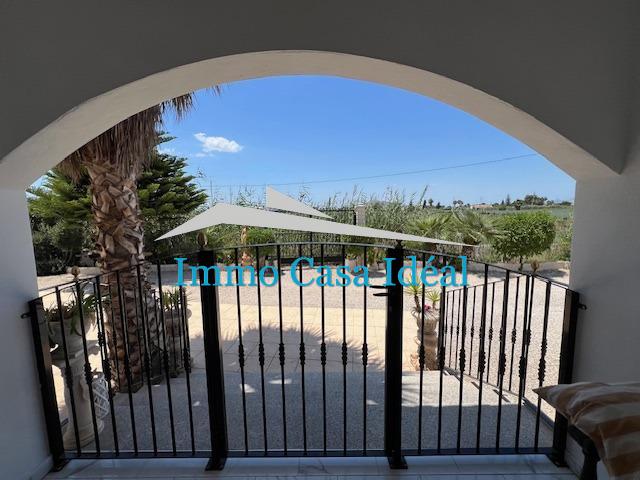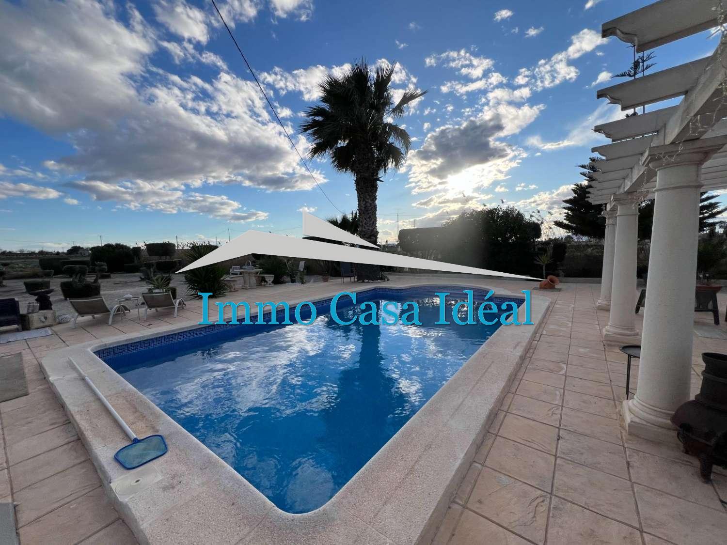 Descripción Descubra la combinación perfecta de encanto rural y vida moderna en esta impresionante casa unifamiliar ubicada en la campiña de Dolores. La propiedad goza de una ubicación privada y tranquila, con acceso controlado, que incluye una lujosa piscina privada y una zona de barbacoa al aire libre. Cinco elegantes escalones de mármol conducen a la imponente entrada, con una puerta principal de alta seguridad. Al entrar, encontrará un acogedor recibidor con iluminación de seguridad y un armario empotrado con puertas de espejo, que ofrece un excelente espacio de almacenamiento. Hay tres dormitorios de generosas dimensiones: dos dobles y uno individual tipo altillo. Todos los dormitorios cuentan con amplios armarios y espacio de almacenamiento. Además, cada uno dispone de su propio baño privado, único y elegantemente decorado y amueblado. Para mayor comodidad, hay un cuarto baño con ducha. La espaciosa sala de estar de planta abierta cuenta con un espectacular salón-comedor, con una excelente iluminación natural y vistas a los impresionantes jardines y al paisaje circundante. Hay una estufa de leña para los meses de invierno. La cocina está totalmente equipada con una gama de muebles bajos y altos y encimeras de mármol. La isla integra un horno eléctrico y hay una placa de gas y eléctrica. Un gran frigorífico-congelador de estilo americano y una lavadora complementan el espacio. El exterior de la propiedad es igualmente impresionante, con sus amplios y encantadores jardines maduros de palmeras y olivos, además de arbustos florales colocados con buen gusto para realzar la privacidad. Hay una gran terraza que se extiende desde el salón-comedor y dos balcones adicionales. Una vez en el exterior, el espacioso patio comedor complementa la zona de barbacoa, con un patio adicional embaldosado. La propiedad cuenta con calefacción y aire acondicionado en la sala de estar y los dormitorios.