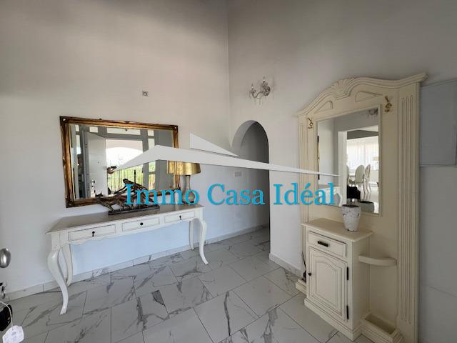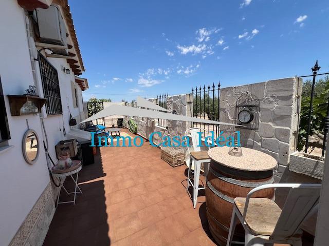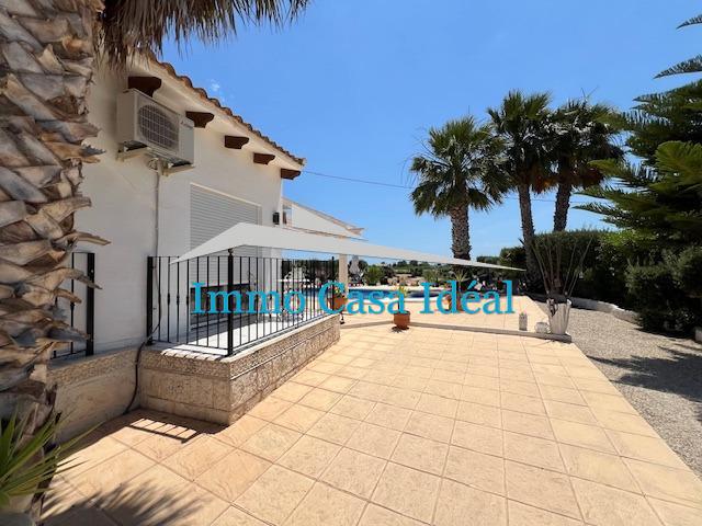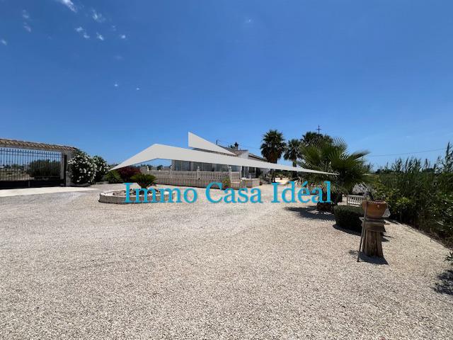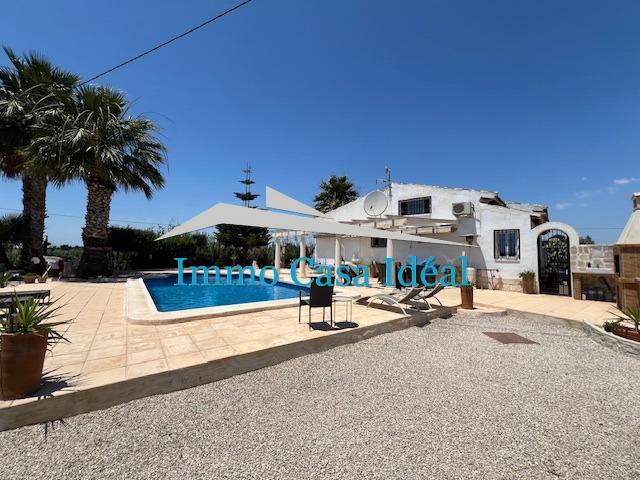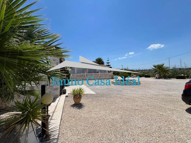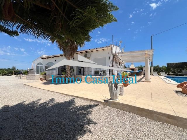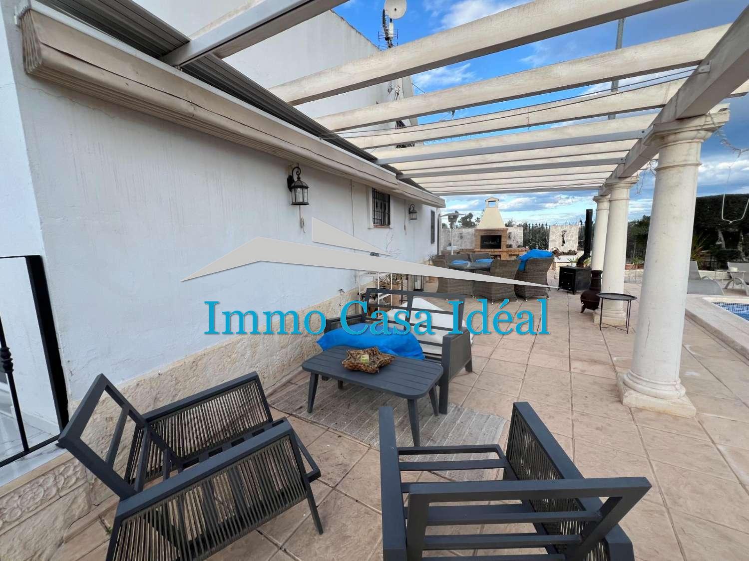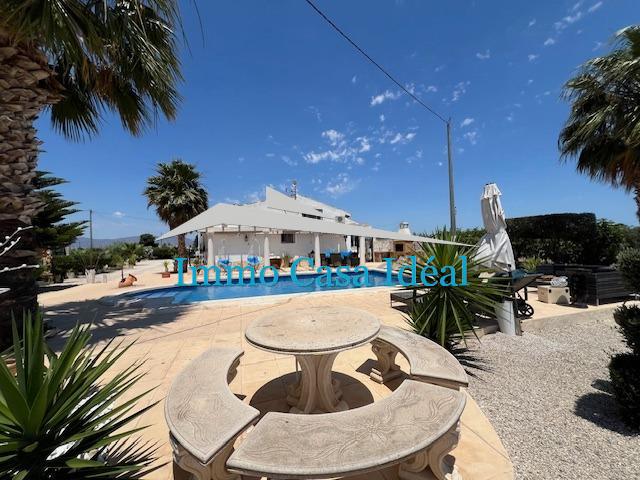 Descripción Descubra la combinación perfecta de encanto rural y vida moderna en esta impresionante casa unifamiliar ubicada en la campiña de Dolores. La propiedad goza de una ubicación privada y tranquila, con acceso controlado, que incluye una lujosa piscina privada y una zona de barbacoa al aire libre. Cinco elegantes escalones de mármol conducen a la imponente entrada, con una puerta principal de alta seguridad. Al entrar, encontrará un acogedor recibidor con iluminación de seguridad y un armario empotrado con puertas de espejo, que ofrece un excelente espacio de almacenamiento. Hay tres dormitorios de generosas dimensiones: dos dobles y uno individual tipo altillo. Todos los dormitorios cuentan con amplios armarios y espacio de almacenamiento. Además, cada uno dispone de su propio baño privado, único y elegantemente decorado y amueblado. Para mayor comodidad, hay un cuarto baño con ducha. La espaciosa sala de estar de planta abierta cuenta con un espectacular salón-comedor, con una excelente iluminación natural y vistas a los impresionantes jardines y al paisaje circundante. Hay una estufa de leña para los meses de invierno. La cocina está totalmente equipada con una gama de muebles bajos y altos y encimeras de mármol. La isla integra un horno eléctrico y hay una placa de gas y eléctrica. Un gran frigorífico-congelador de estilo americano y una lavadora complementan el espacio. El exterior de la propiedad es igualmente impresionante, con sus amplios y encantadores jardines maduros de palmeras y olivos, además de arbustos florales colocados con buen gusto para realzar la privacidad. Hay una gran terraza que se extiende desde el salón-comedor y dos balcones adicionales. Una vez en el exterior, el espacioso patio comedor complementa la zona de barbacoa, con un patio adicional embaldosado. La propiedad cuenta con calefacción y aire acondicionado en la sala de estar y los dormitorios.