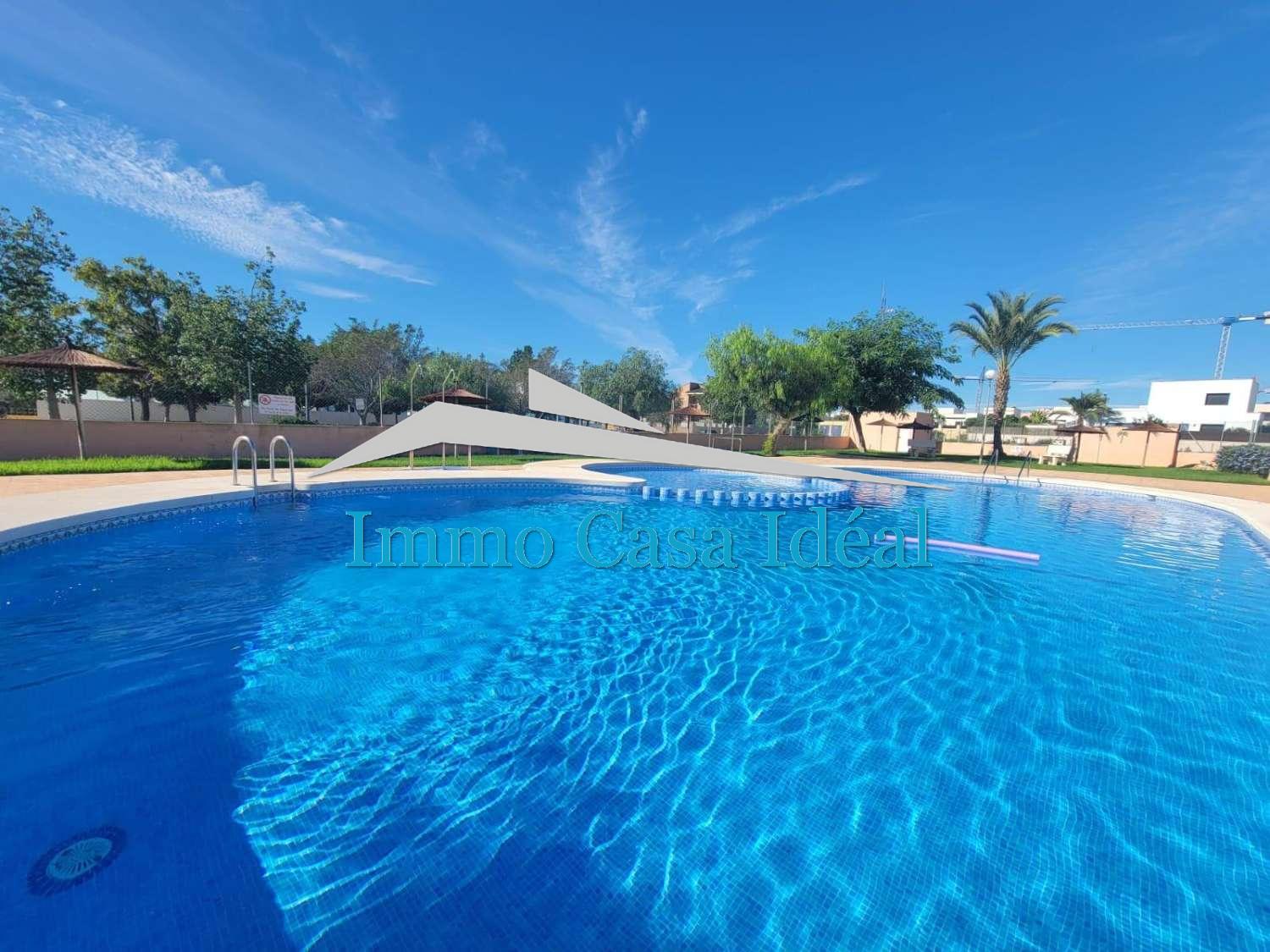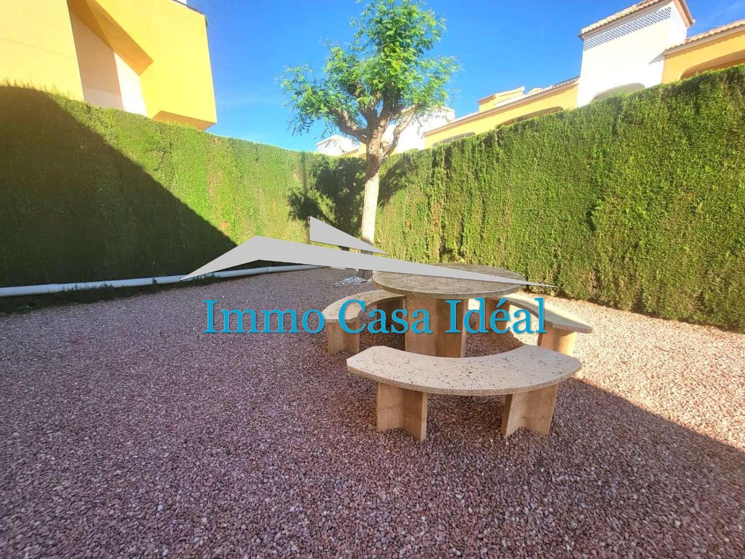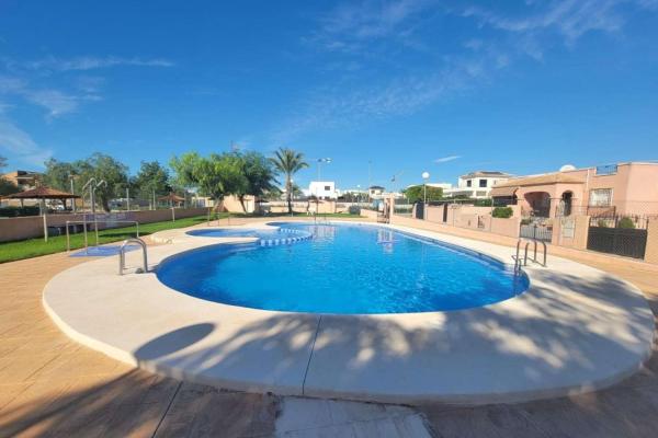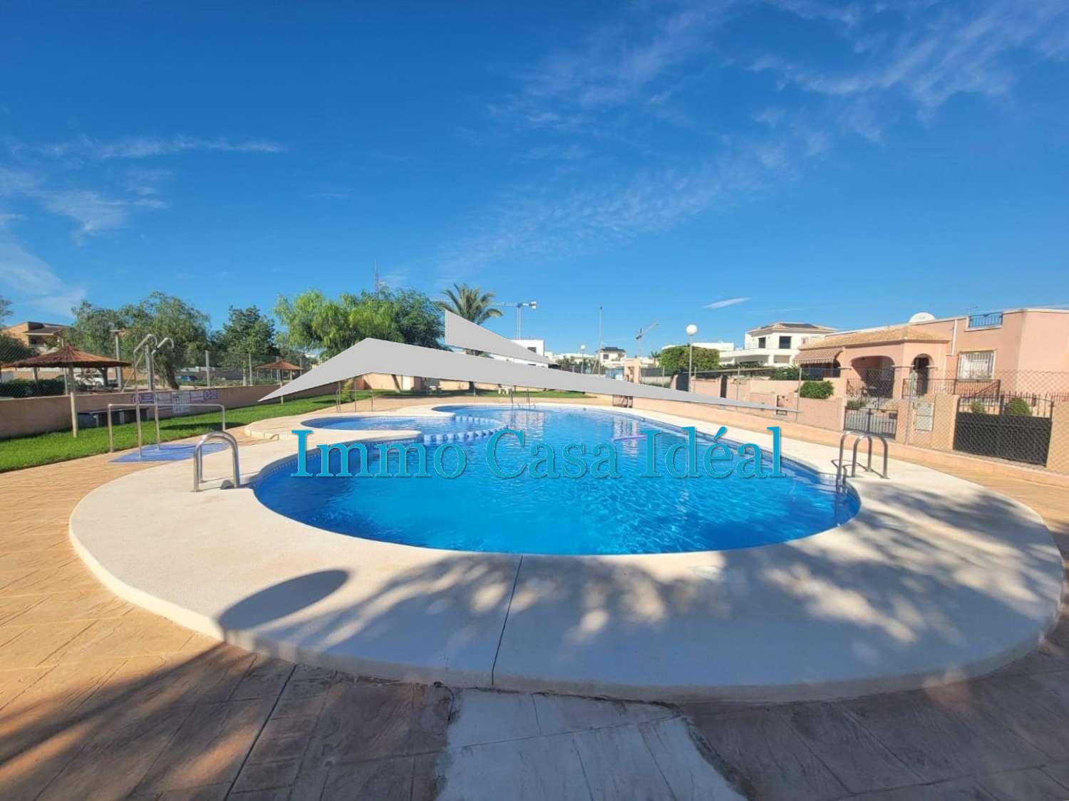 Villa adosada, todo en una planta sin vecinos arriba, en bonita urbanización con piscina y jardines en una zona muy tranquila en Los Montesinos.