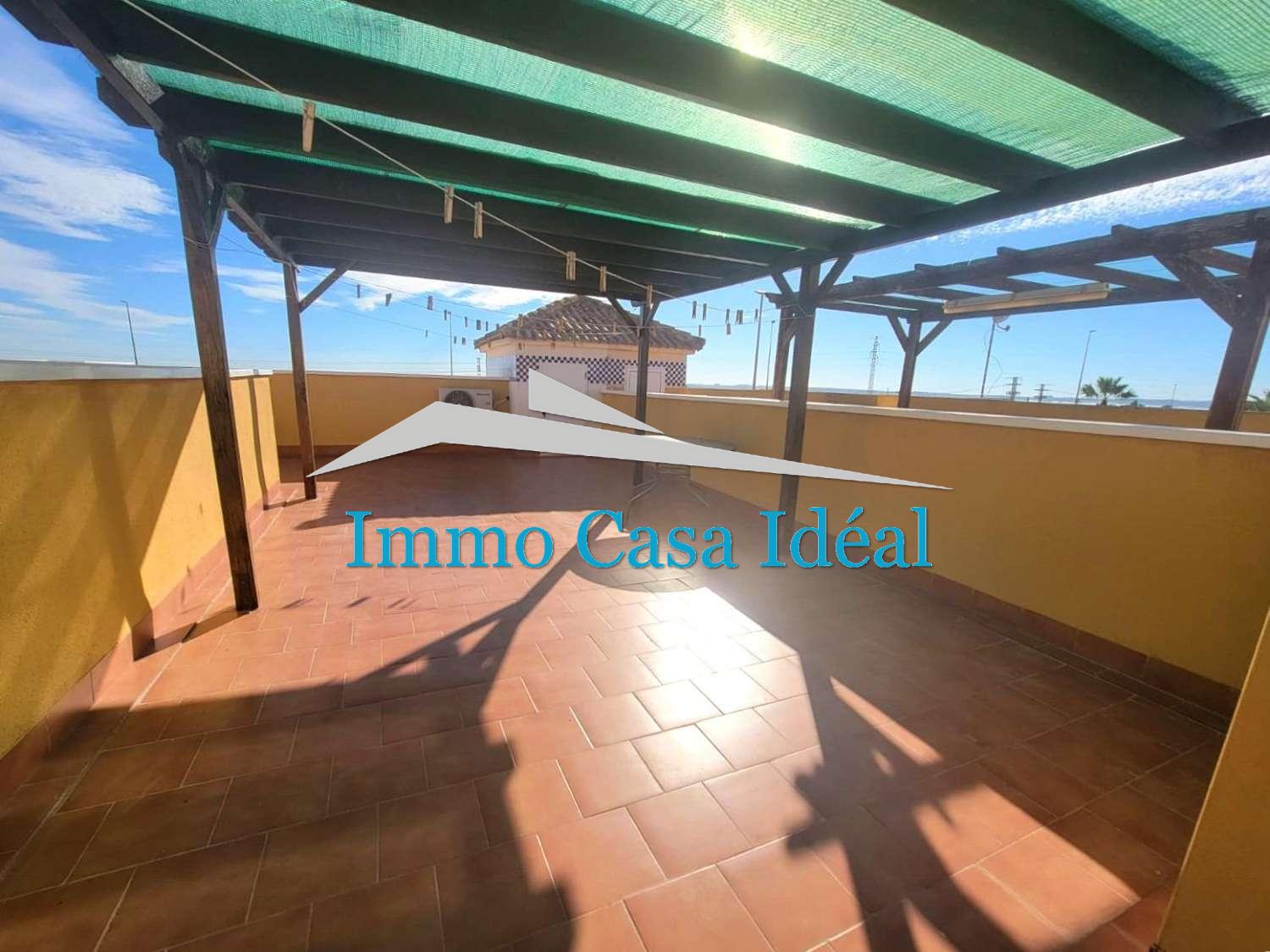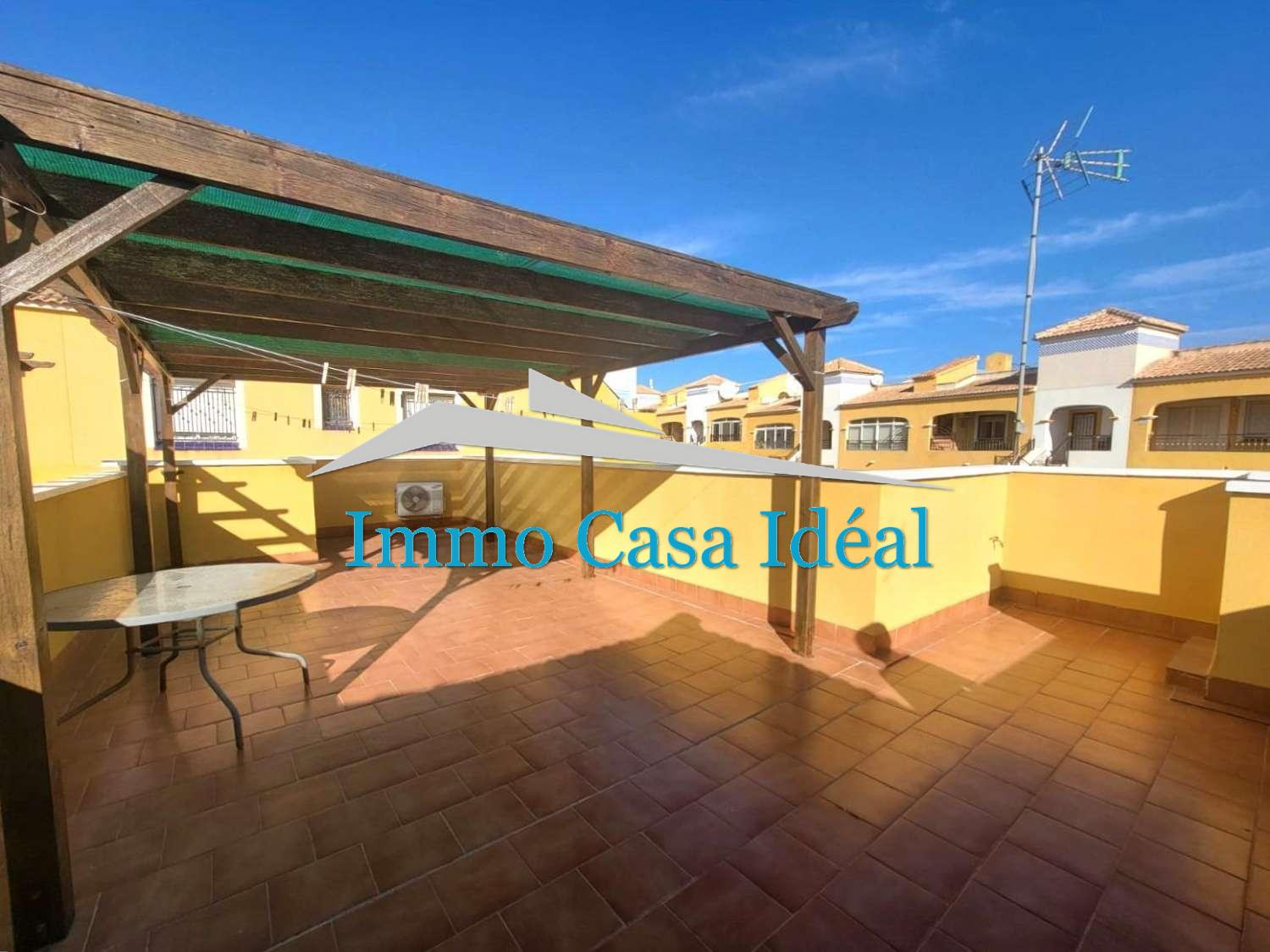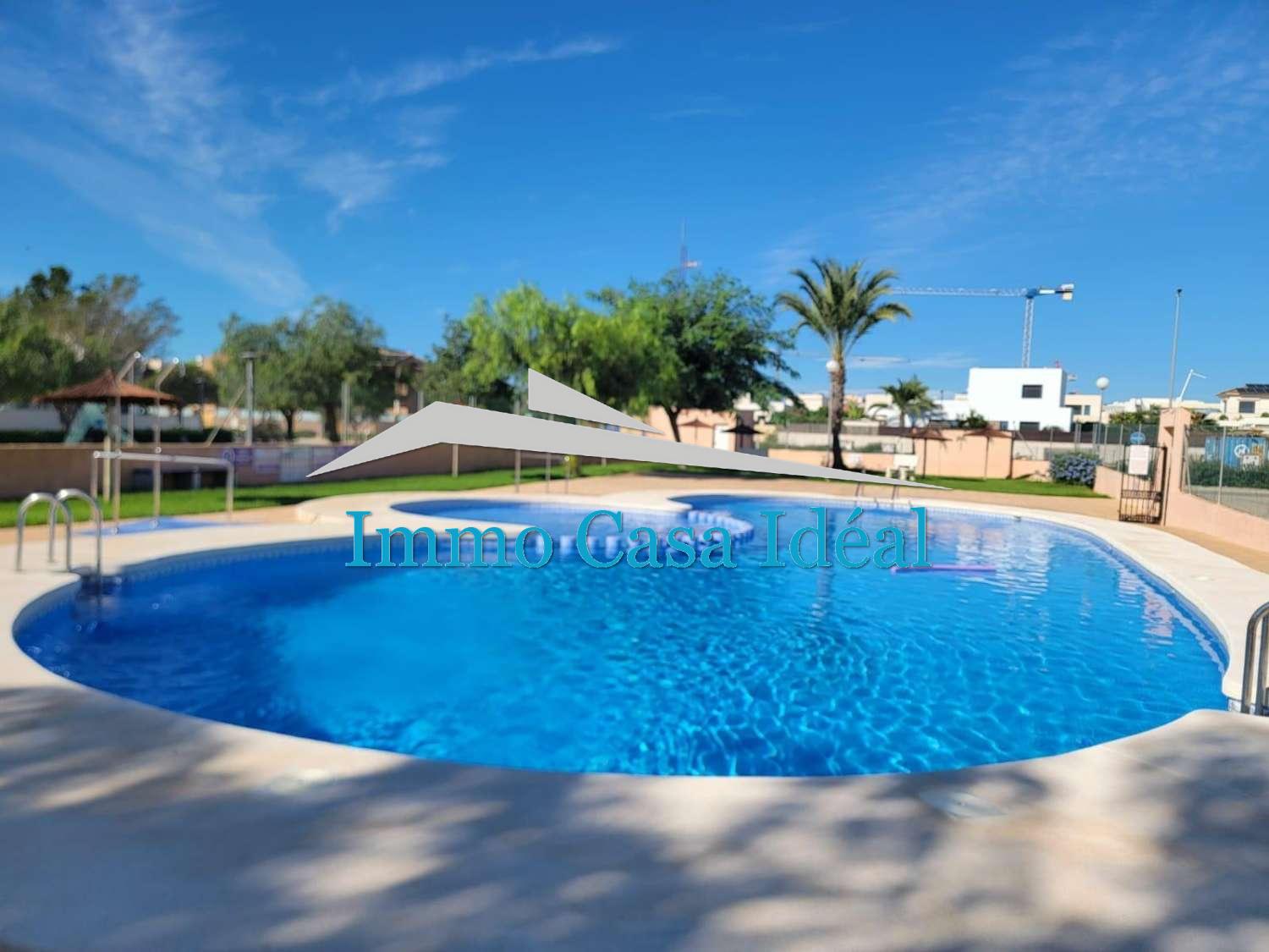 Villa adosada, todo en una planta sin vecinos arriba, en bonita urbanización con piscina y jardines en una zona muy tranquila en Los Montesinos.
