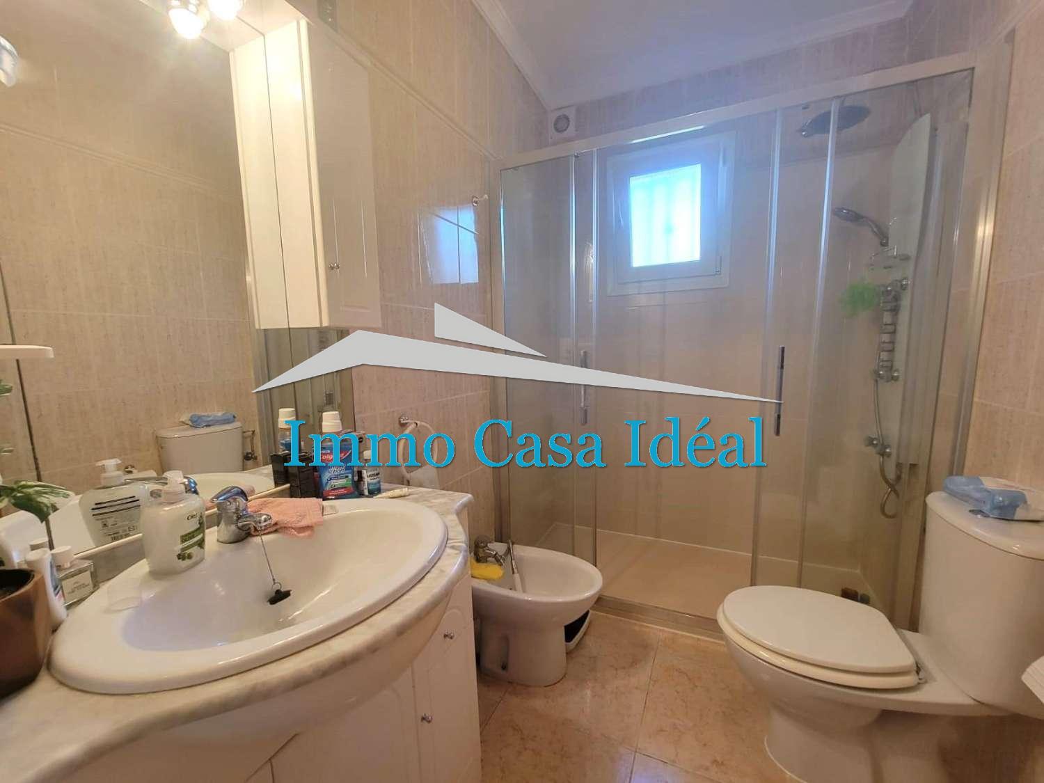 Dispone de un porche en la entrada a la vivienda, un amplio salón comedor, una cocina independiente totalmente equipada, dos dormitorios dobles, un dormitorio simple, un cuarto de baño con ducha Italiana, un pequeño cuarto con la lavadora, una terraza acristalada, un gran solárium con una pérgola con vistas al paisaje y un jardín enorme de unos 150 m2 vallado con arbolado. Aparcamiento en la parcela privada. Acceso directo desde la calle.