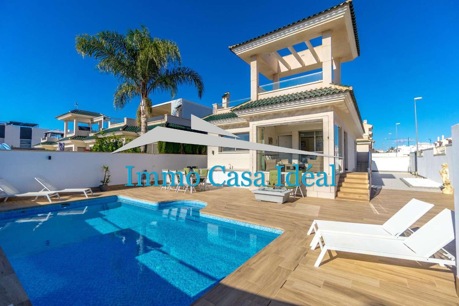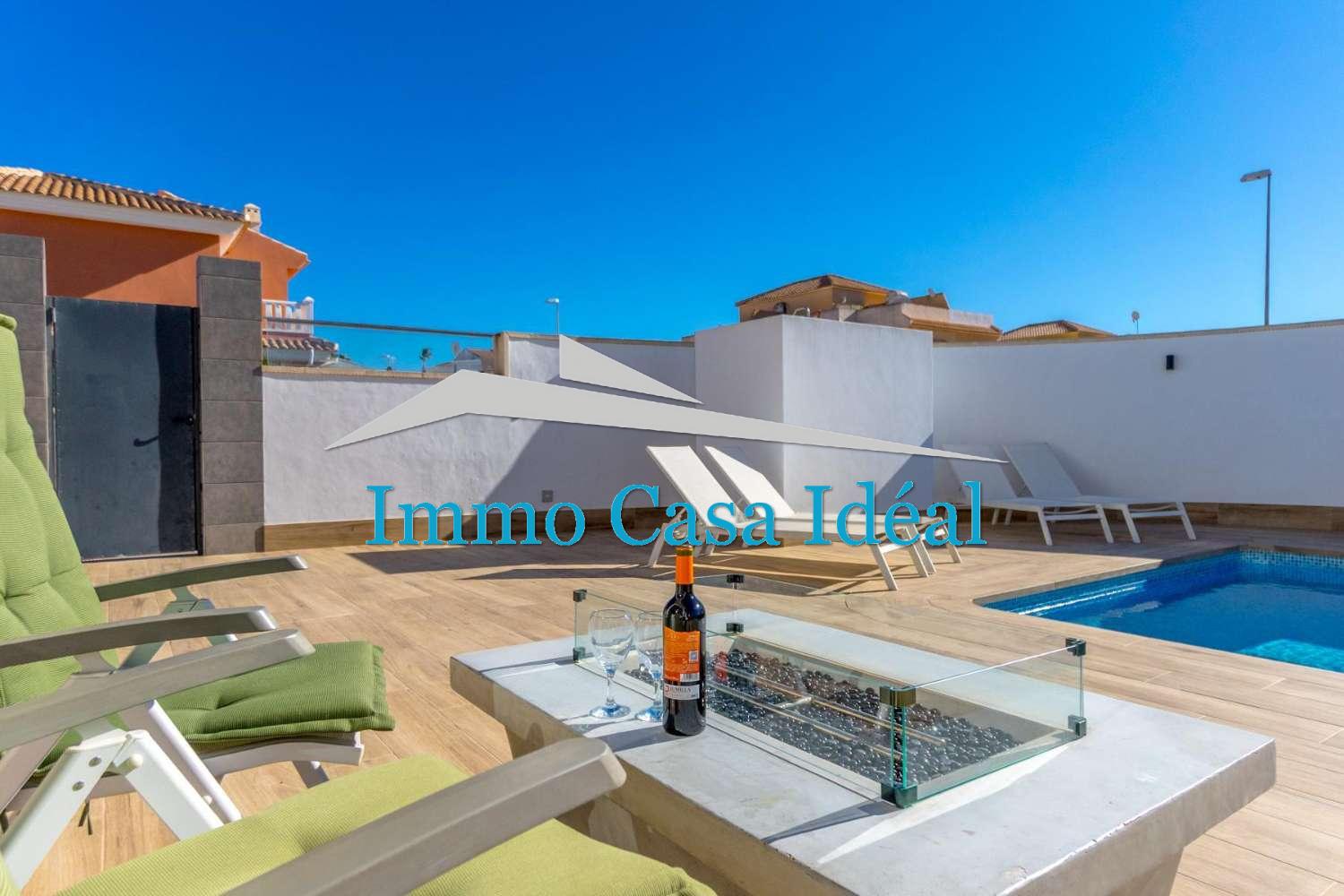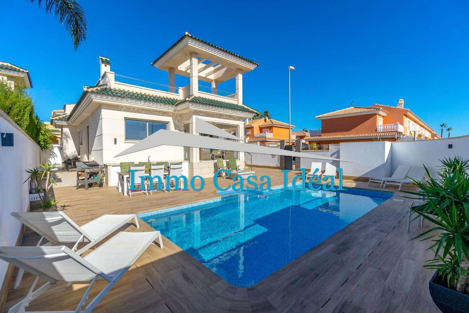 Découvrez cette impressionnante villa individuelle à Ciudad Quesada - Lo Marabú, un bien qui combine à la perfection le charme méditerranéen avec un design moderne et contemporain. Avec un terrain de 420 m² et 104 m² construits sur un seul niveau, cette propriété offre un style de vie confortable, lumineux et conçu pour en profiter toute l’année.