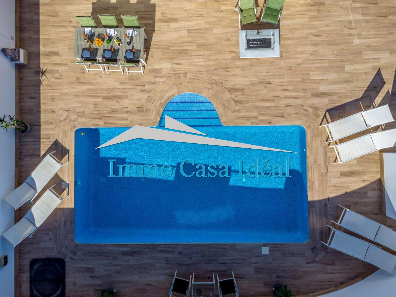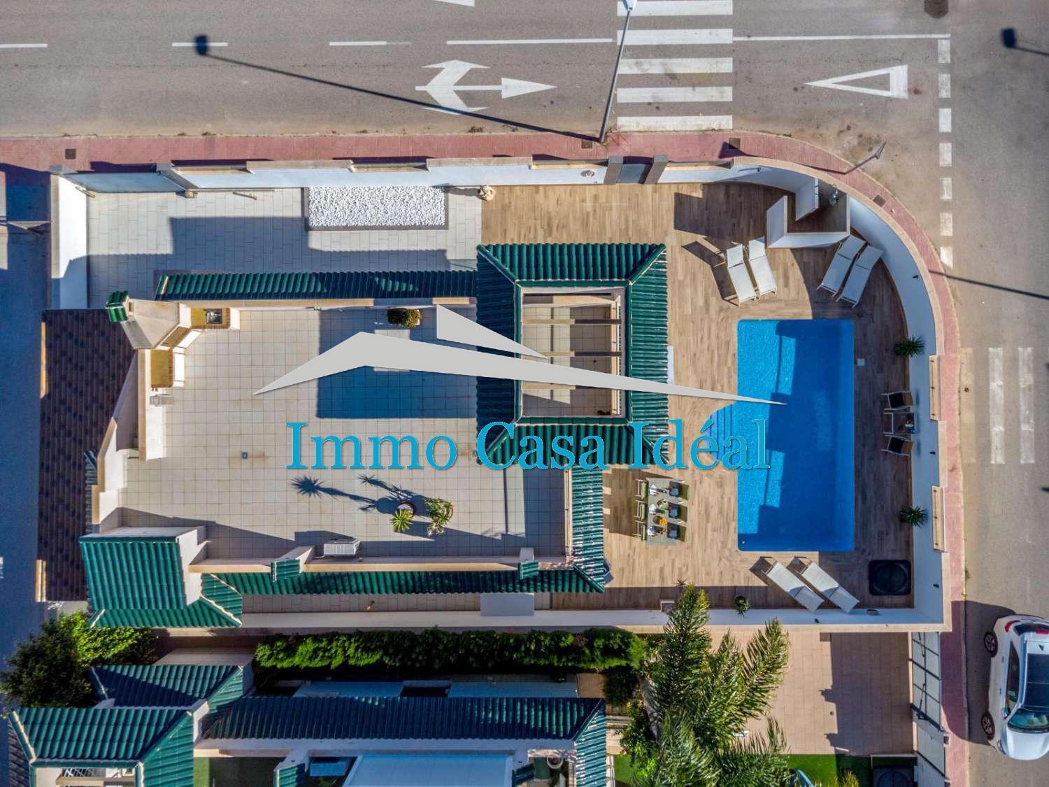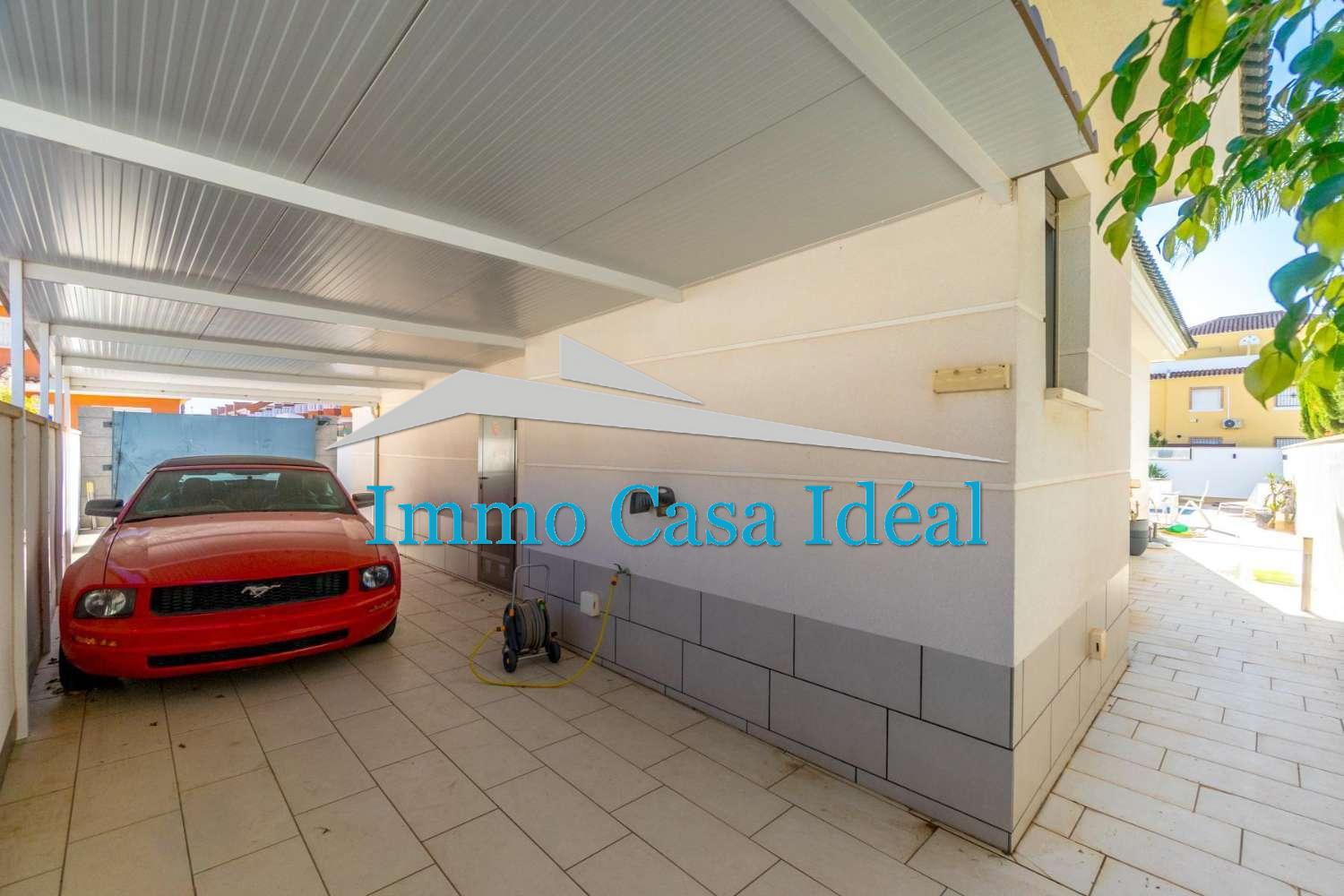 La parcelle, entièrement carrelée, propose différents espaces pour se détendre. Sa cuisine d’été est parfaite pour recevoir famille et amis, et la véritable pièce maîtresse de l’extérieur est sa piscine privée, un vrai plaisir pendant les journées chaudes. La maison dispose également d’un parking sur la parcelle, d’une pergola, d’un portail automatique et d’un débaras.