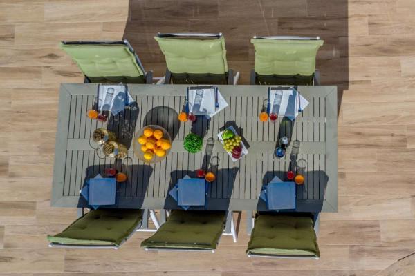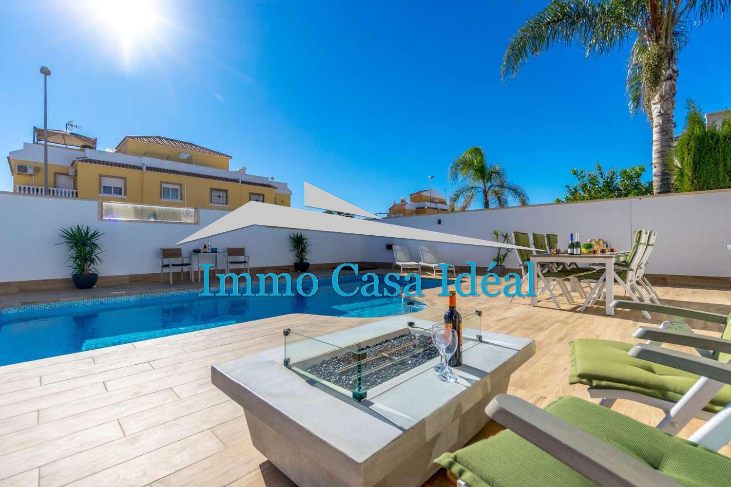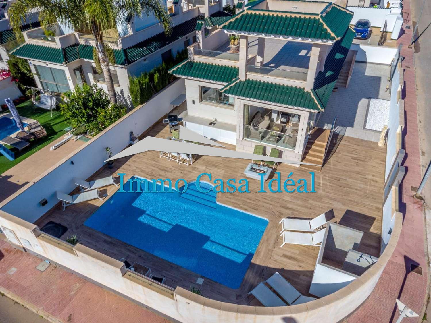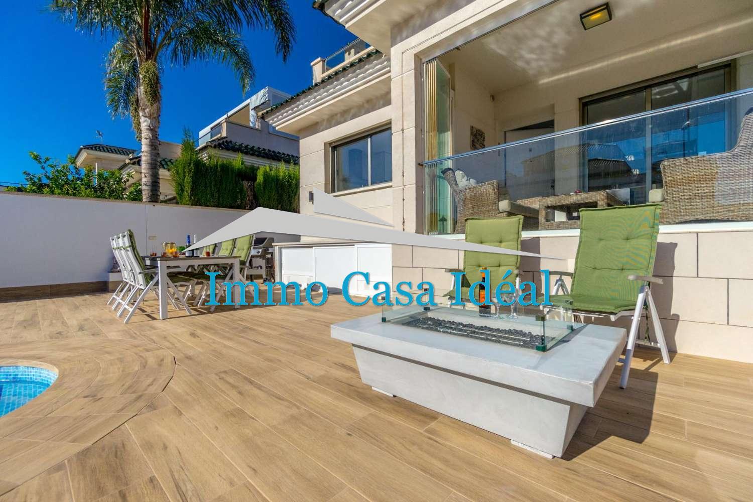 La parcelle, entièrement carrelée, propose différents espaces pour se détendre. Sa cuisine d’été est parfaite pour recevoir famille et amis, et la véritable pièce maîtresse de l’extérieur est sa piscine privée, un vrai plaisir pendant les journées chaudes. La maison dispose également d’un parking sur la parcelle, d’une pergola, d’un portail automatique et d’un débaras.
