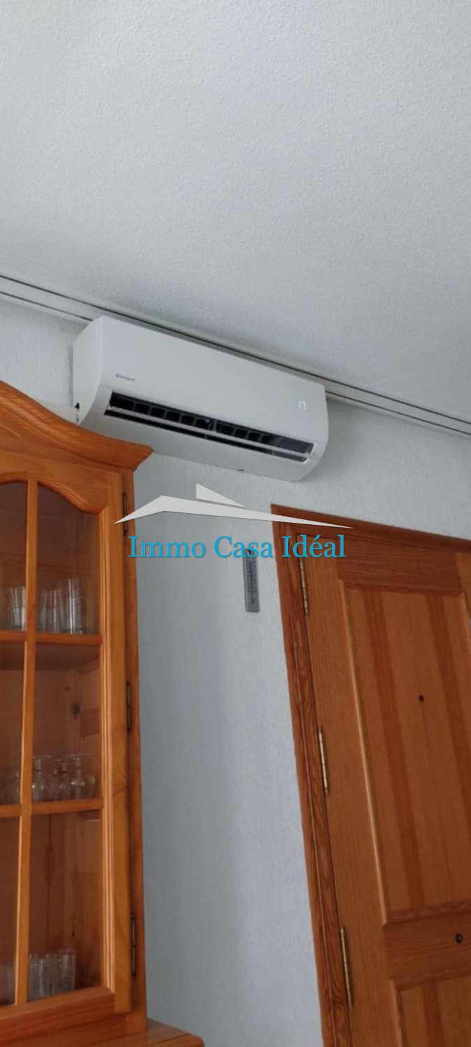 Nydelig, lys stue med klimaanlegg og peis som åpner ut mot en terrasse hvor du kan nyte solen hele året og spise frokost med familien