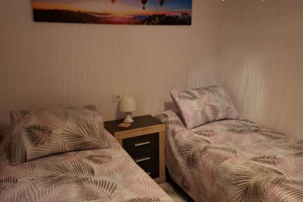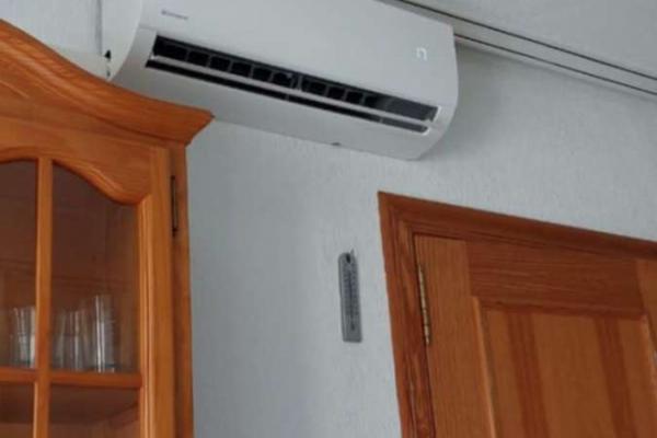 Soverom 1 med dobbeltseng, garderobeskap, nytt klimaanlegg og Wi-Fi for TV-en