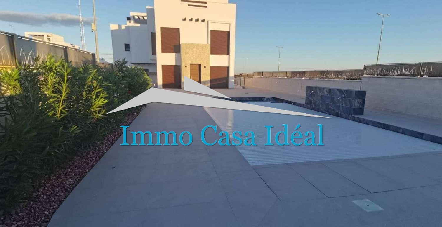 Вона складається з 3 спалень, 3 ванних кімнат, кухні відкритого планування зі сніданковою барною стійкою, світлої вітальні та багато іншого. Крім того, є велика приватна ділянка з басейном, садом та гаражем, а на самому верху - вражаючий солярій, з якого відкривається фантастичний вид на природне середовище лагун Торрев'єха-Ла-Мата, який надихне вас і яким можна насолоджуватися в будь-який час доби.
